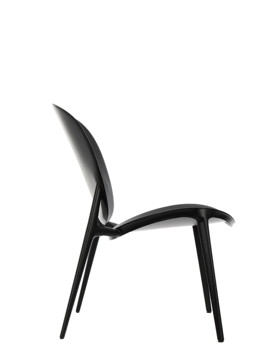 Una poltrona che mescola più espressioni in un unico lessico, riprendendo le linee dei più tradizionali sgabelli scolpiti dell’Africa mixate all’America degli anni d’oro del design, riprendendo il concetto del multistrato curvato.