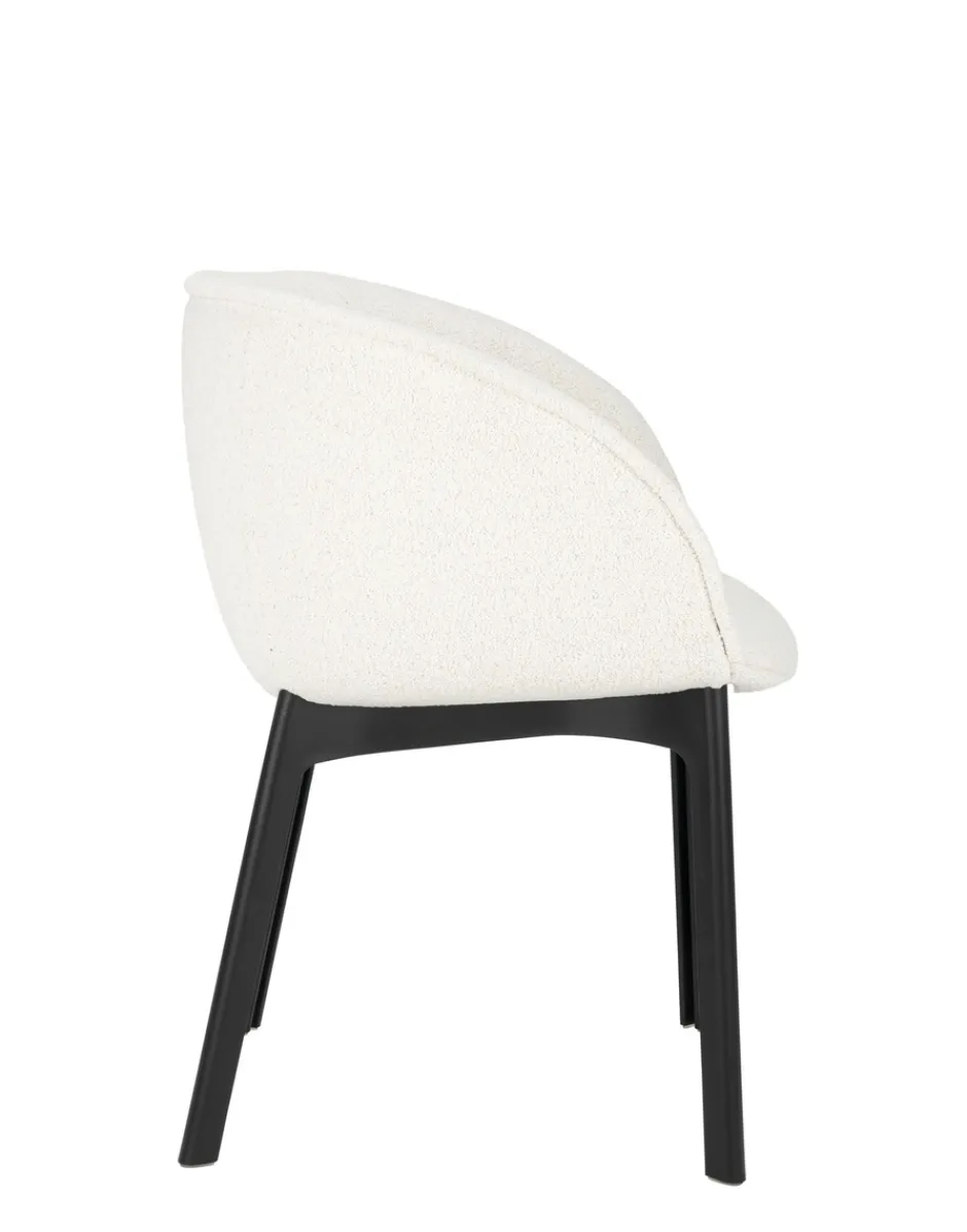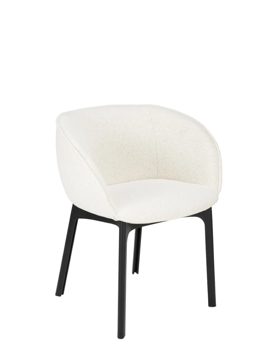 Eleganza e forme morbide: CHARLA è una poltroncina dining che abbraccia l’ospite con la sua seduta avvolgente. La poltroncina nasce con tutte le attenzioni per adattarsi a scenari contract e consumer, che si tratti di una breve pausa nella hall di un hotel o di una cena nel soggiorno di casa.Le gambe in materiale plastico riciclato, per un prodotto che unisce eleganza e attenzione all’ambiente, sono disponibili nel colore nero, mentre i rivestimenti sono in bouclé o tessuto contract mélange.