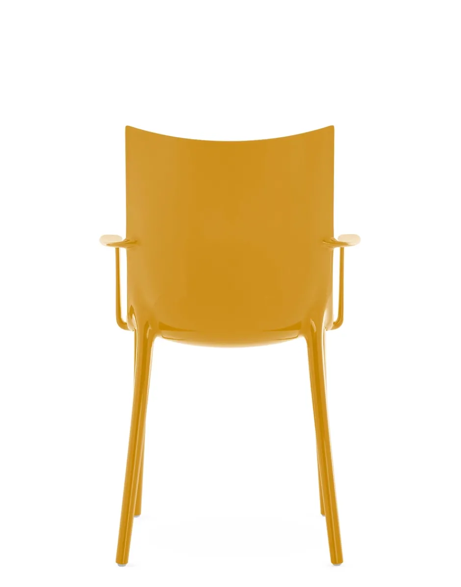 Philippe Starck ci conduce verso un nuovo vertice con la sedia H.H.H. – HER HIGHEST HIGHNESS. Con un’eleganza e un’imponenza grafica senza pari, H.H.H. definisce l’essenza stessa dell’essere umano che interagisce con essa, costringendolo a prendere una posizione. Un oggetto che va oltre il mero concetto di seduta, trasformando ogni momento trascorso su di essa in un momento di vera e propria regalità. La struttura è in materiale riciclato e la seduta è disponibile in diverse finiture: pelle riciclata con trattamento di concia green, nei colori nero e cuoio, ecofriendly texture proveniente in parte da materiale riciclato e in parte da fonti rinnovabili nei colori nero e tabacco e nella finitura lucida super glossy nei colori bianco, nero, bordeaux, ruggine, senape, blu e verde.Ma H.H.H. si eleva al di sopra delle semplici funzioni pratiche di una sedia, diventando un emblema di stile e che incanta e ispira chiunque vi si avvicini grazie all’edizione Kartell x Liberty, rivestita in sei tessuti Liberty con vivaci stampe floreali.Fedele al suo essere pioniera nella ricerca di nuove e diverse forme di innovazione tecnologica, Kartell ha inoltre deciso di fare un ulteriore passo in questa direzione, sperimentando una nuova tecnica di “graphic impression” in cui, con uno stampaggio altamente tecnologico, vengono proposti 4 pattern floreali e geometrici in diverse versioni cromatiche.