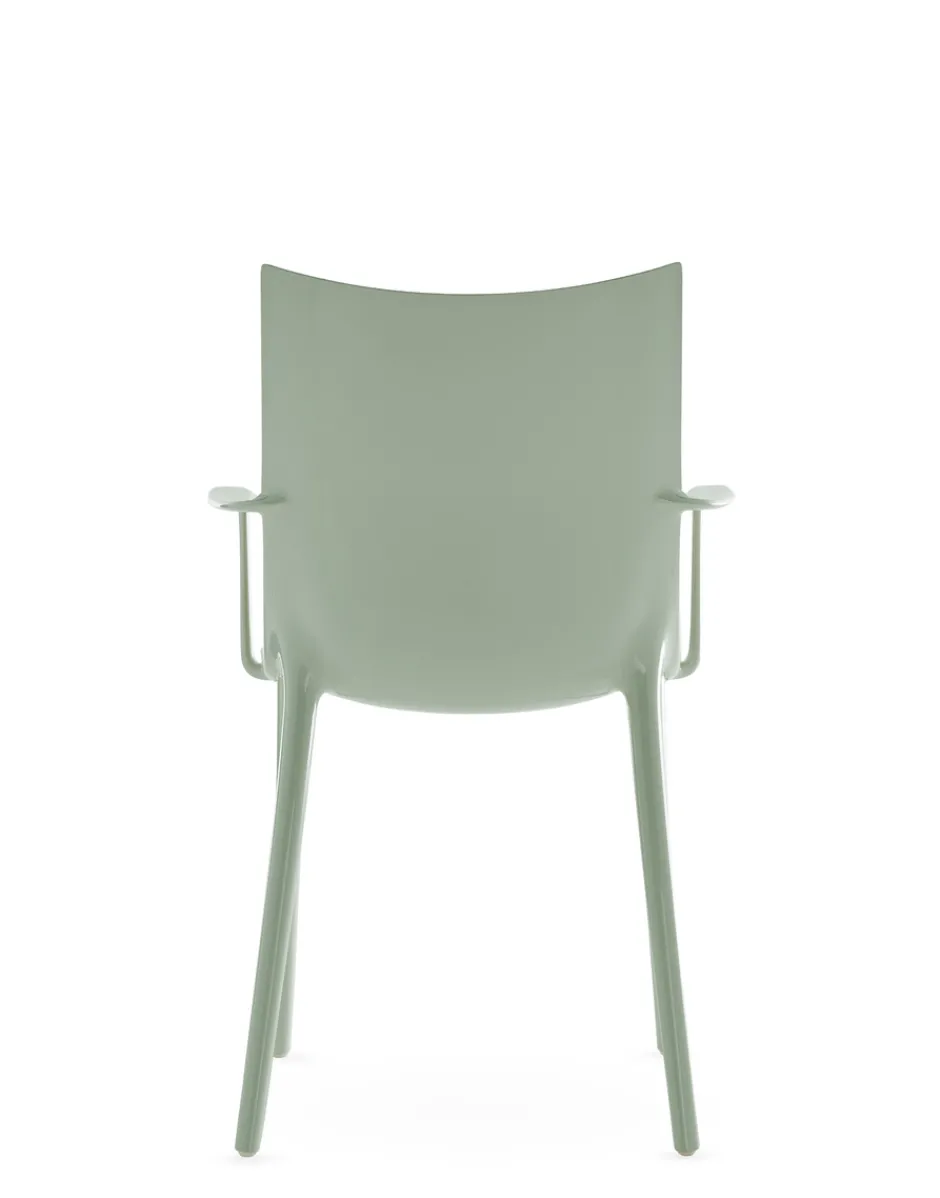 Philippe Starck ci conduce verso un nuovo vertice con la sedia H.H.H. – HER HIGHEST HIGHNESS. Con un’eleganza e un’imponenza grafica senza pari, H.H.H. definisce l’essenza stessa dell’essere umano che interagisce con essa, costringendolo a prendere una posizione. Un oggetto che va oltre il mero concetto di seduta, trasformando ogni momento trascorso su di essa in un momento di vera e propria regalità. La struttura è in materiale riciclato e la seduta è disponibile in diverse finiture: pelle riciclata con trattamento di concia green, nei colori nero e cuoio, ecofriendly texture proveniente in parte da materiale riciclato e in parte da fonti rinnovabili nei colori nero e tabacco e nella finitura lucida super glossy nei colori bianco, nero, bordeaux, ruggine, senape, blu e verde.Ma H.H.H. si eleva al di sopra delle semplici funzioni pratiche di una sedia, diventando un emblema di stile e che incanta e ispira chiunque vi si avvicini grazie all’edizione Kartell x Liberty, rivestita in sei tessuti Liberty con vivaci stampe floreali.Fedele al suo essere pioniera nella ricerca di nuove e diverse forme di innovazione tecnologica, Kartell ha inoltre deciso di fare un ulteriore passo in questa direzione, sperimentando una nuova tecnica di “graphic impression” in cui, con uno stampaggio altamente tecnologico, vengono proposti 4 pattern floreali e geometrici in diverse versioni cromatiche.