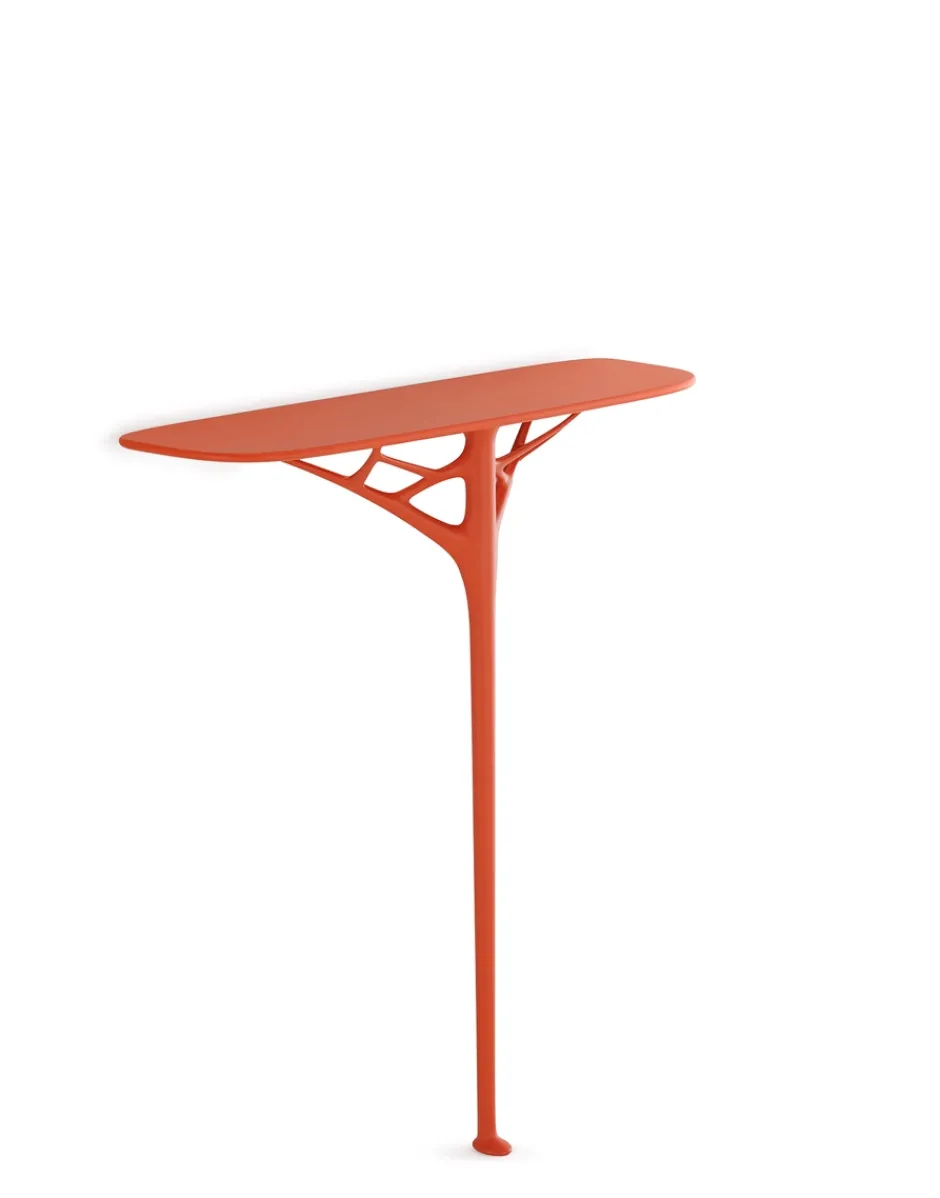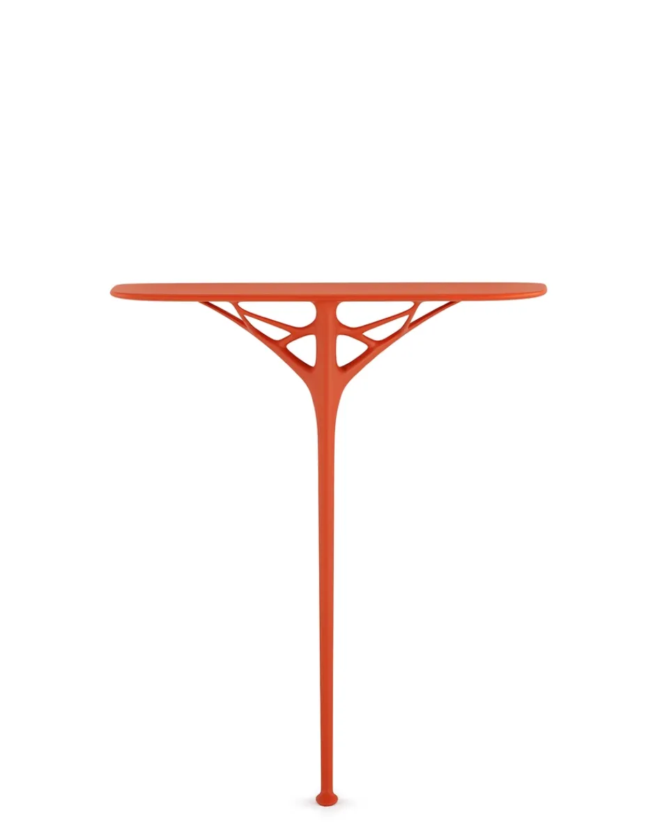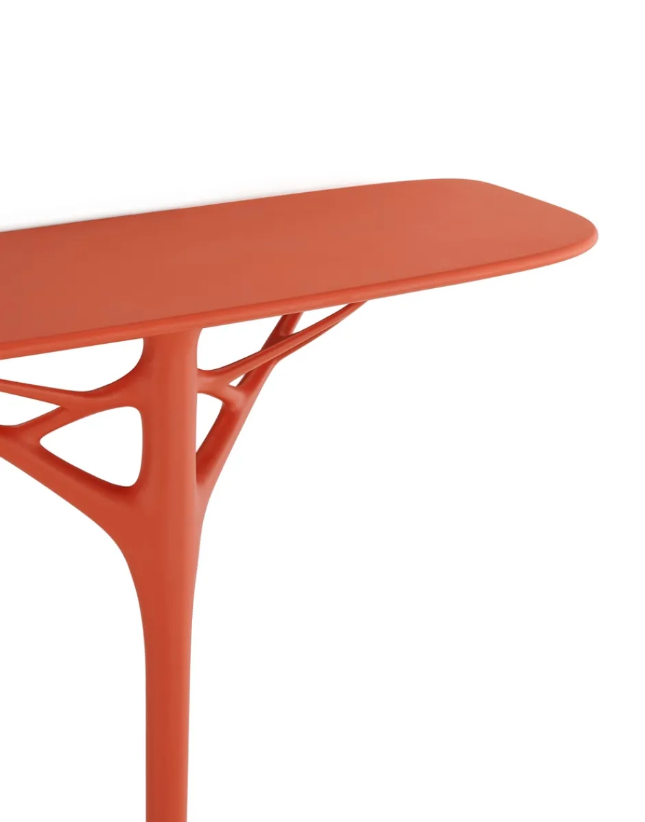 A.I. CONSOLE si propone come idea di eleganza dell’intelligenza artificiale allaricerca del minimun, il punto zero dello stile. La console che riprende le linee ormai riconoscibili che caratterizzanola famiglia è un arredo unico, che lascia una traccia essenziale ma di carattere a ingressi e disimpegni graziealla sua linea con una gamba centrale. Ideale sia per ambienti habitat sia per il contract, con tante varianti di colore:bianco, grigio, verde, terracotta e nero.Il valore aggiunto di A.I. consiste nell’essere la prima famiglia di prodotti concepita dall’Intelligenza Artificiale che ha risposto agli input ricevuti dal designer (Philippe Starck) e al know-how dall’azienda (Kartell). Nello specifico, pensiero creativo, know-how aziendale e intelligenza artificiale si sono fuse per concepire un modello di sedia totalmente elaborato da un algoritmo che rispetta le richieste originali del designer e dell’azienda ovvero essere un prodotto, confortevole, che abbia i requisiti strutturali di resistenza e solidità richiesti, mantenendo anche uno dei valori principali di Kartell: essere un prodotto industriale stampato ad iniezione di grande qualità estetica.