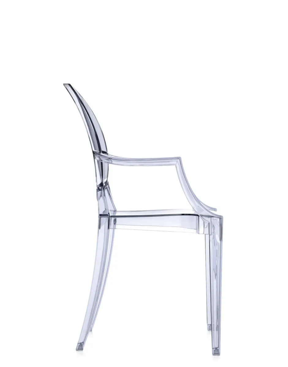 Louis Ghost è il più coraggioso esempio al mondo d’iniezione del policarbonato in un unico stampo. Una seduta ispirata alle linee della poltroncina Luigi XV, l’ideotipo del barocco, che Philippe Starck ha saputo reinterpretare per stupire, emozionare, affascinare. Nonostante l’immagine evanescente e cristallina, Louis Ghost è stabile e resistente, a prova di urti e agenti atmosferici, impilabile fino a 6 pezzi. Un prodotto dal forte carisma e dal notevole appeal estetico, da inserire in ogni contesto, abitativo o collettivo.