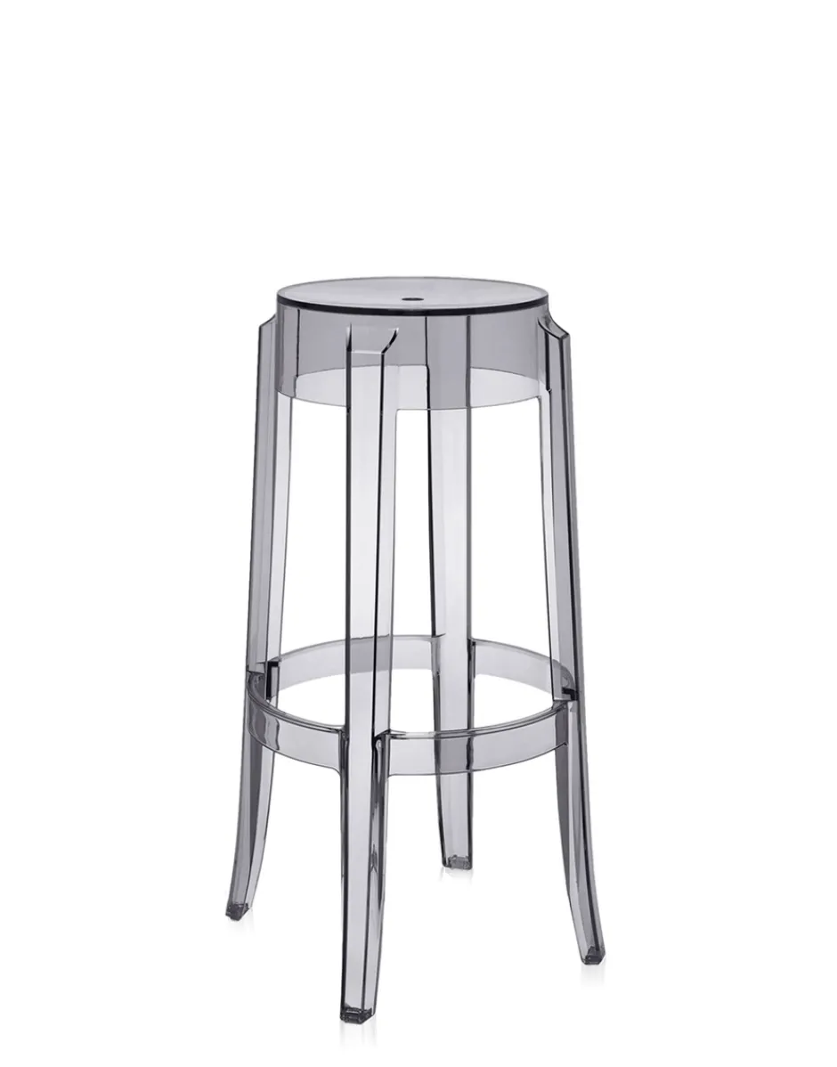Charles Ghost è lo sgabello che richiama la forma delle sedute dell’ 800. La linea della gamba è arrotondata e leggermente arricciata, icona dello sgabello classico. É disponibile in tre diverse altezze: dallo sgabello per una seduta occasionale ed informale allo sgabello per il banco cucina o il bancone bar. Si adatta ad ambienti indoor come a quelli outdoor.