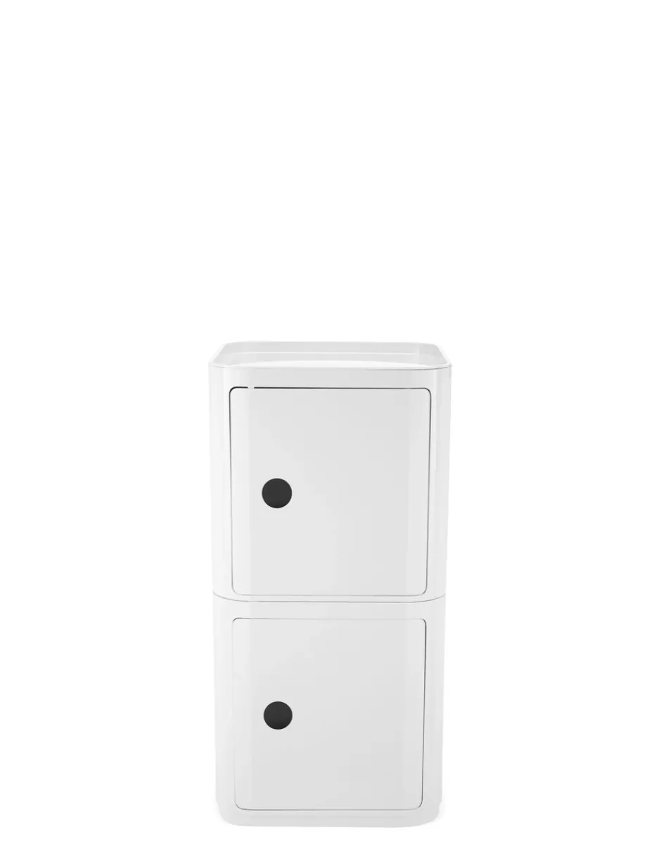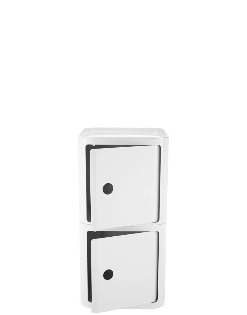 Gli elementi componibili sono stati progettati per rispondere a diverse esigenze d’uso e vivere in ogni ambiente della casa. La soluzione progettuale che anima il sistema Componibili è l’elementare e solida sovrapposizione verticale dei singoli pezzi che, tramite semplice incastro, vanno a comporre pratici mobili contenitori. Proposti in forma rotonda (diametro 42 cm) e quadrata (38x38cm), i Componibili possono poggiare su rotelle. Flessibili, funzionali, pratici, i Componibili nati nel 1967 sono un classico senza tempo dell’arredamento.
