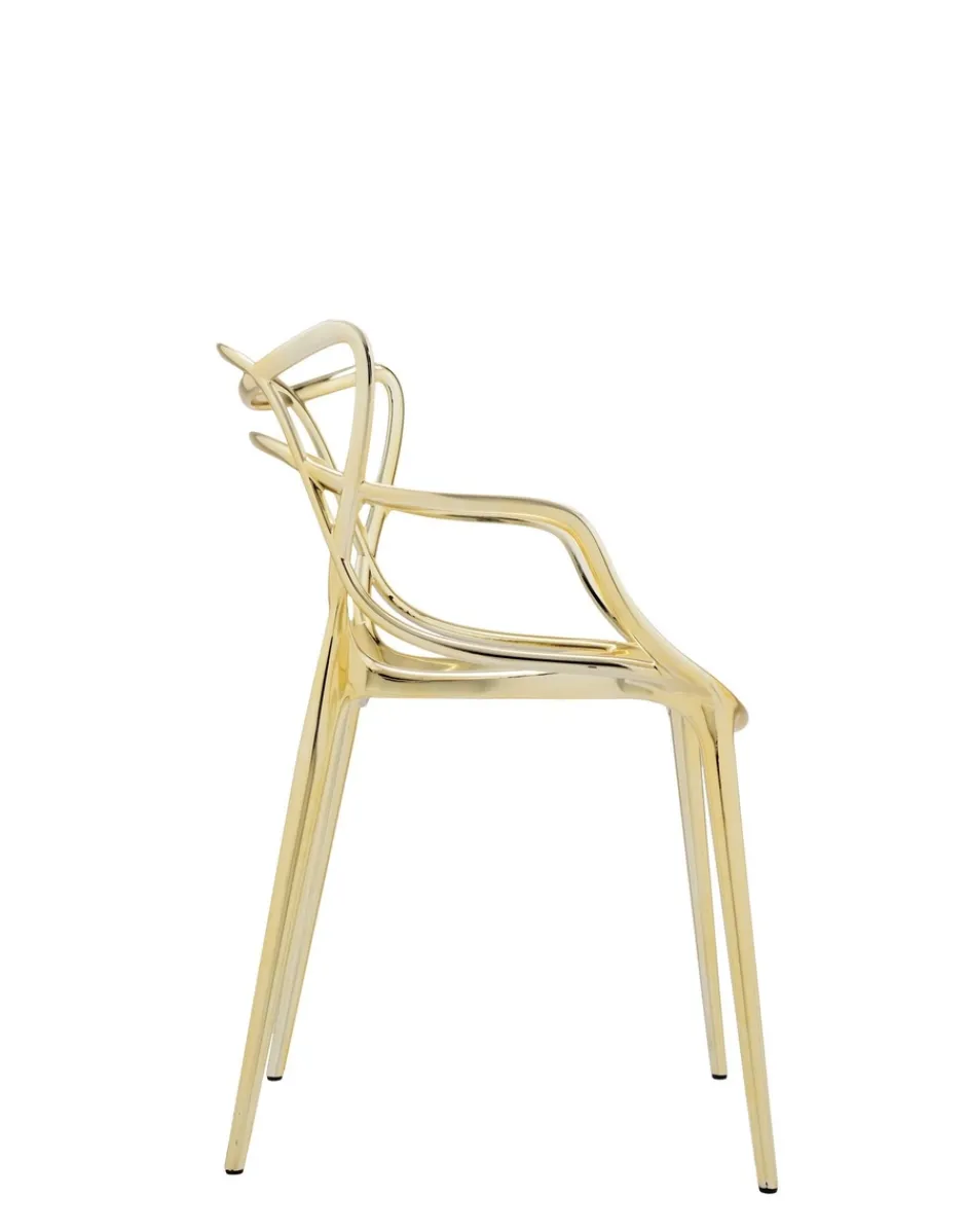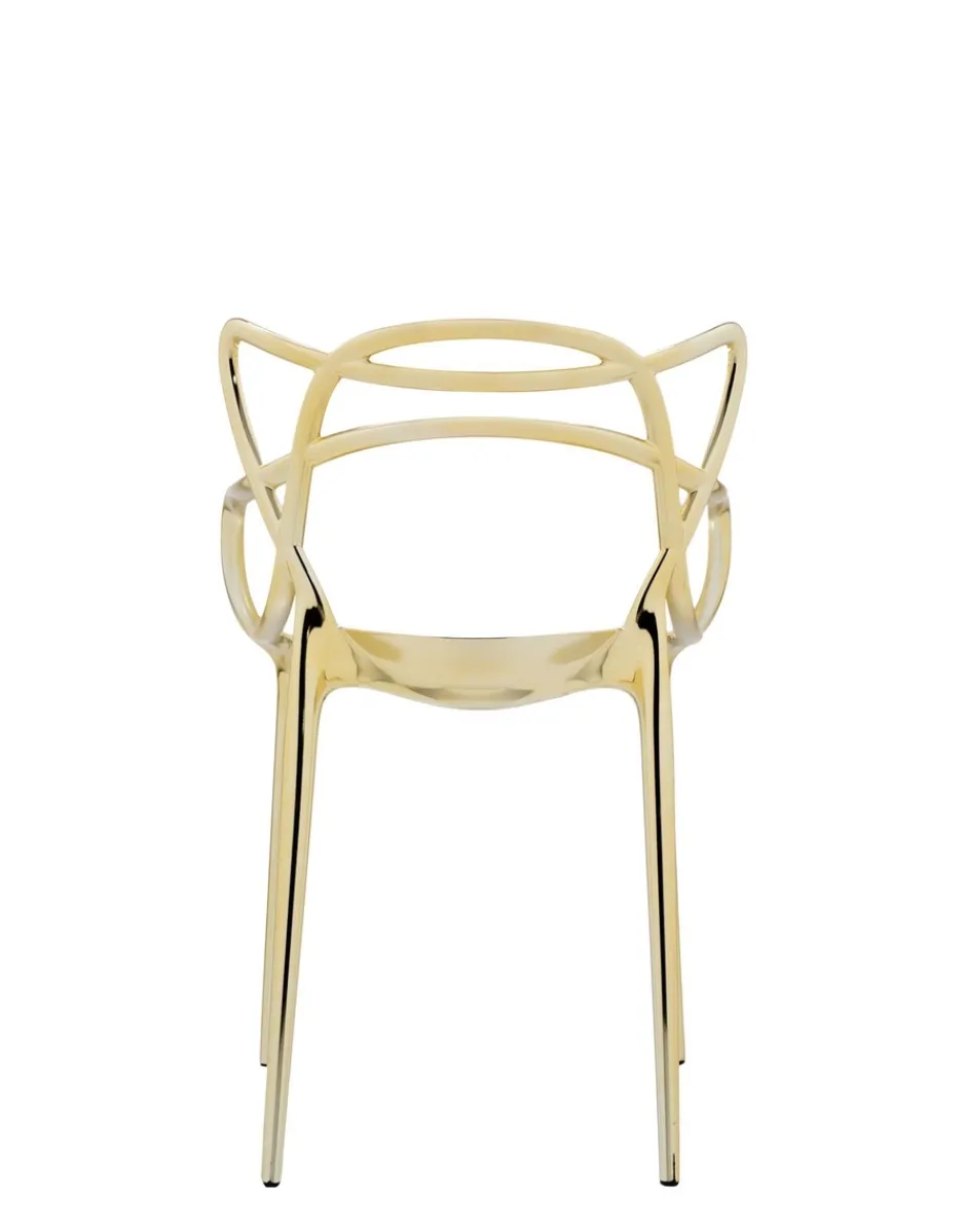 La sedia Masters è un acuto omaggio a tre sedie-simbolo, rilette e reinterpretate dal genio creativo di Starck. La “Serie 7” di Arne Jacobsen, la “Tulip Armchair” di Eero Saarinen e la “Eiffel Chair” di Charles Eames intrecciano le inconfondibili silhouette in un ibrido sinuoso, per dare vita a una fusione di stili originale e accattivante. Leggera e pratica, Masters può essere utilizzata anche all’esterno. Per un effetto più prezioso è proposta anche in finiture metallizzate.