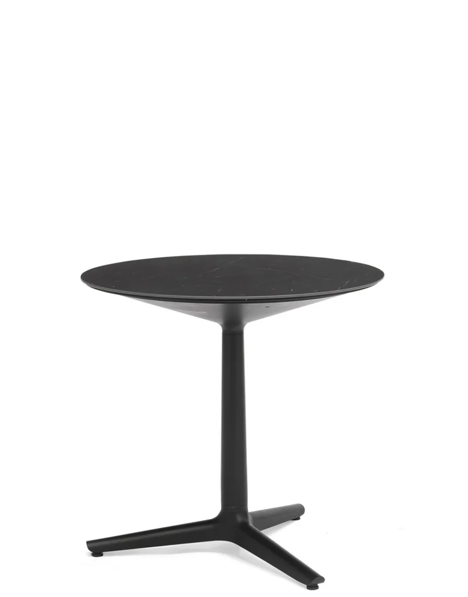 Multiplo è un’ampia famiglia di tavoli, trasversale nei suoi impieghi, e pensata per consentire la personalizzazione giocando sulle forme (quadrata stondata, tonda e ovale) e l’abbinamento di basi (base centrale, a due, tre o quattro razze) e piani (in gres tinta unita o finitura marmo e vetro).