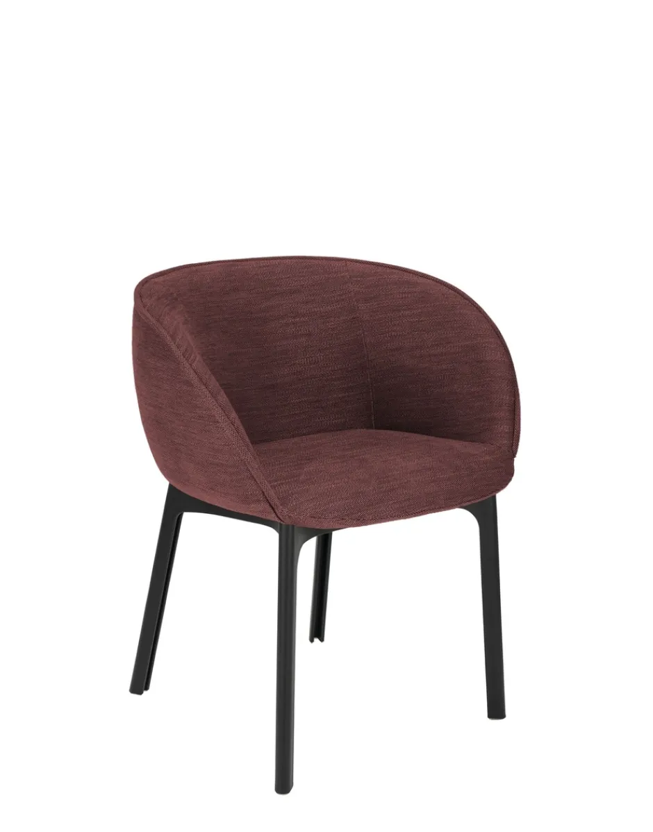 Eleganza e forme morbide: CHARLA è una poltroncina dining che abbraccia l’ospite con la sua seduta avvolgente. La poltroncina nasce con tutte le attenzioni per adattarsi a scenari contract e consumer, che si tratti di una breve pausa nella hall di un hotel o di una cena nel soggiorno di casa.Le gambe in materiale plastico riciclato, per un prodotto che unisce eleganza e attenzione all’ambiente, sono disponibili nel colore nero, mentre i rivestimenti sono in bouclé o tessuto contract mélange.