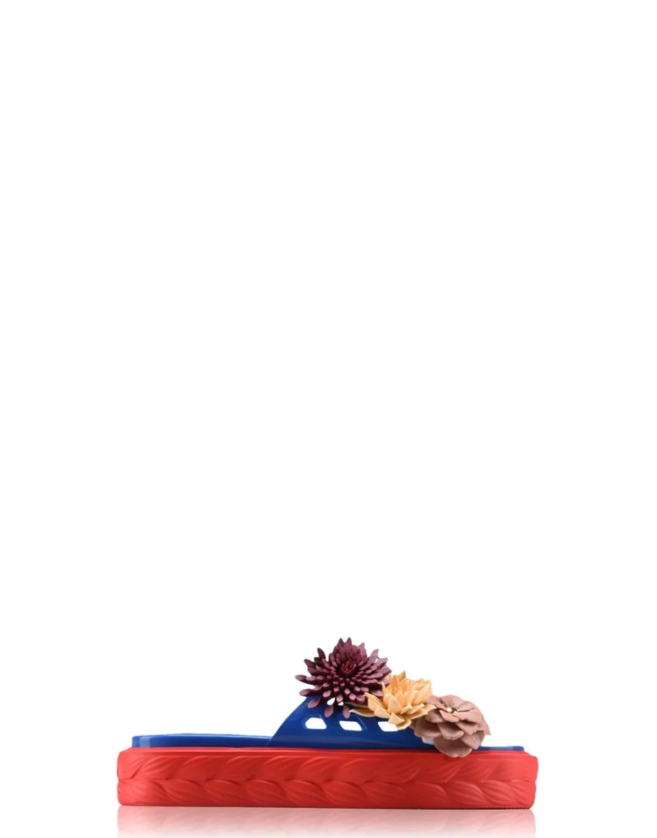 Il sandalo Claudia è disponibile in diverse varianti colore. Il motivo delle due mani che formano un cuore caratterizza la fascia della tomaia, a cui sono inoltre applicate riproduzioni di fiori tridimensionali.