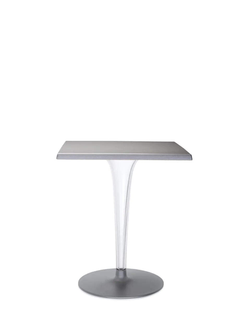 La linea di tavolini TopTop si contraddistingue per la gamba che può essere trasparente a sezione rotonda o quadrata, con la superficie sfaccettata e un’anima in metallo.