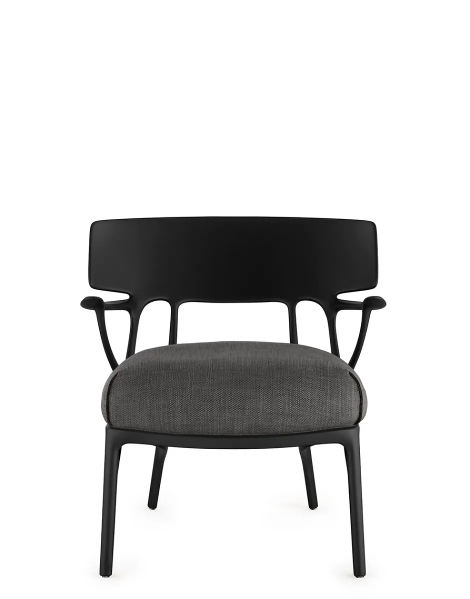 A.I. LOUNGE è la nuova poltrona della famiglia A.I. che coniuga materiali sostenibili e comfort con unsegno grafico che guarda al futuro e al benessere nei nostri luoghi dell’abitare. Una poltrona da salotto in cui lelinee, tratto distintivo della collezione, si mescolano alla massima comodità della seduta. Disponibile nei coloribianco, nero, arancio e grigio e nelle versioni con e senza cuscino per utilizzo indoor e outdoor.Il valore aggiunto di A.I. consiste nell’essere la prima famiglia di prodotti concepita dall’Intelligenza Artificiale che ha risposto agli input ricevuti dal designer (Philippe Starck) e al know-how dall’azienda (Kartell). Nello specifico, pensiero creativo, know-how aziendale e intelligenza artificiale si sono fuse per concepire un modello di sedia totalmente elaborato da un algoritmo che rispetta le richieste originali del designer e dell’azienda ovvero essere un prodotto, confortevole, che abbia i requisiti strutturali di resistenza e solidità richiesti, mantenendo anche uno dei valori principali di Kartell: essere un prodotto industriale stampato ad iniezione di grande qualità estetica.
