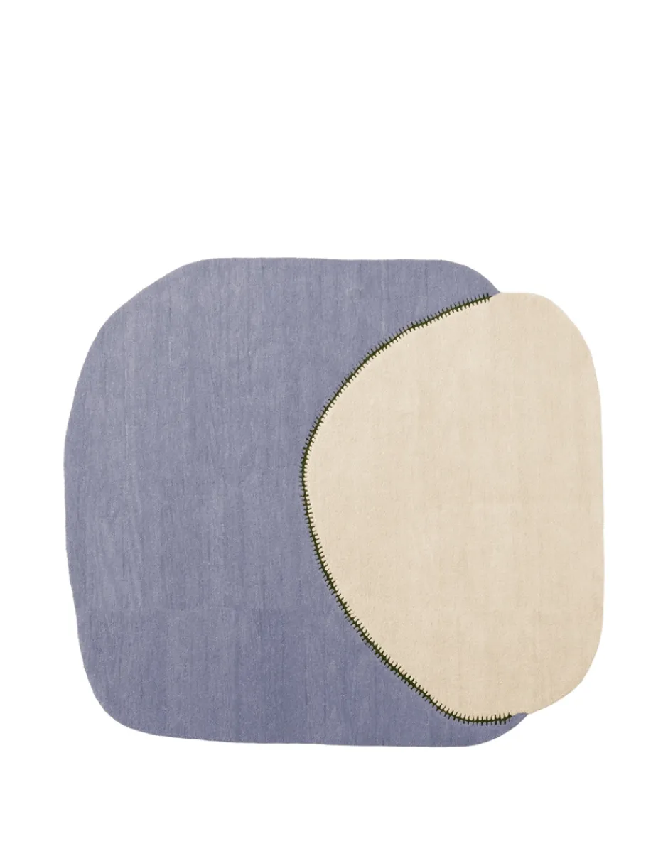 I tappeti AALAND sono caratterizzati da un motivo grafico unico. Questo motivo rappresenta due forme organiche tondeggianti, ognuna con campiture differenti, posizionate vicine l’una all’altra e unite da un segno grafico,una sorta di sutura. Questo accorgimento crea un effetto visivo di grande impatto,arricchendo ulteriormente l’estetica e la vivacità dello spazio circostante.