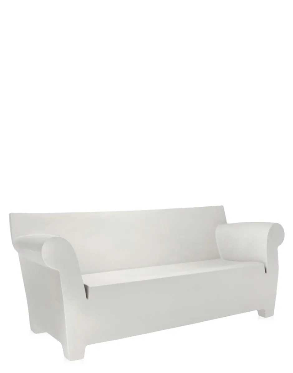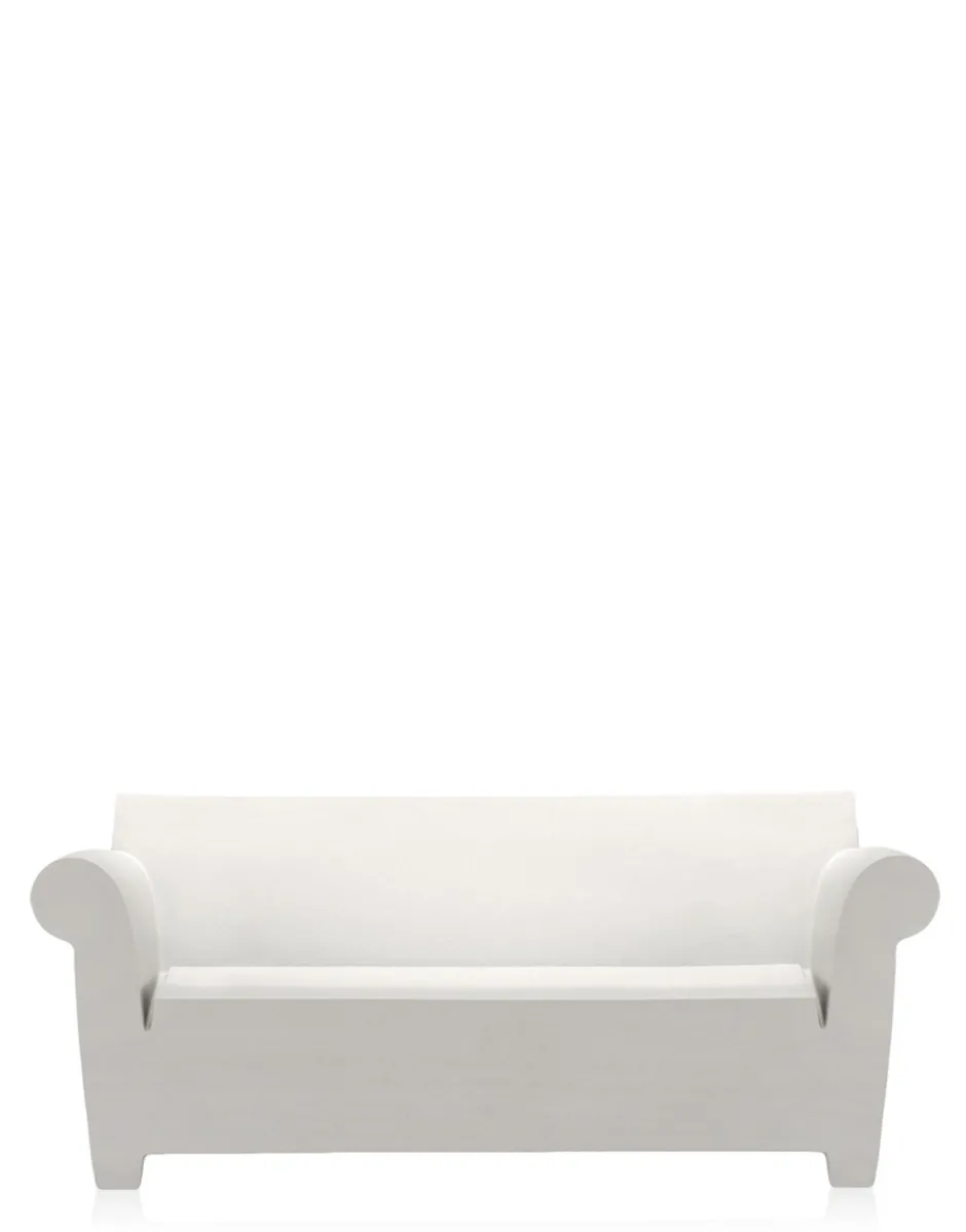 Bubble Club è il divano industriale in cui la tecnologia a stampaggio rotazionale ha consentito a Kartell di produrre in serie. Un divano a due posti major, caratterizzato dalla linea morbida dei braccioli in contrasto con quella più razionale dello schienale; una silhouette essenziale, che richiama le linee del “divano della nonna”. Insieme alla poltrona e al tavolino, realizzati nelle stesse finiture e colori, Bubble Club è una vera e propria famiglia, un “salotto industriale” per arredare un giardino, un bordo piscina, un terrazzo.