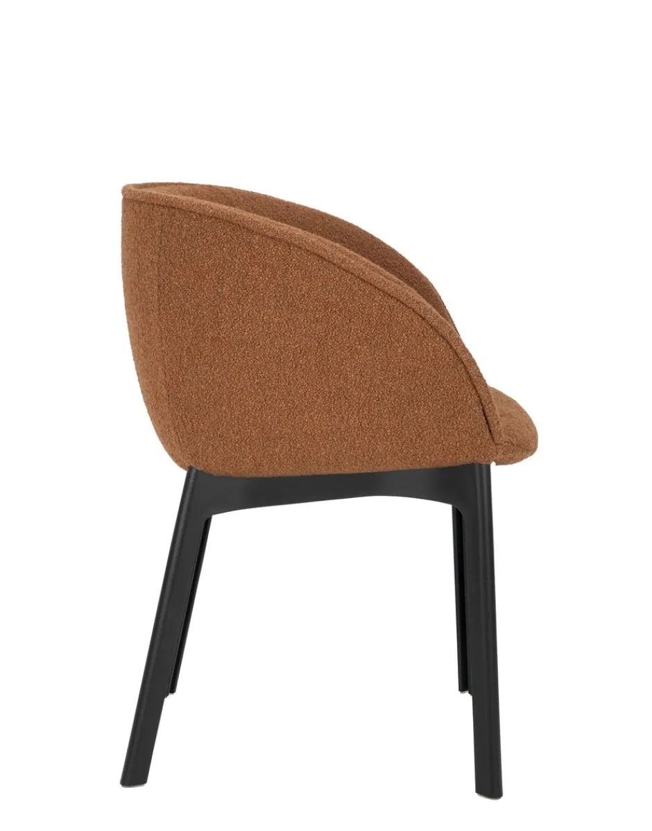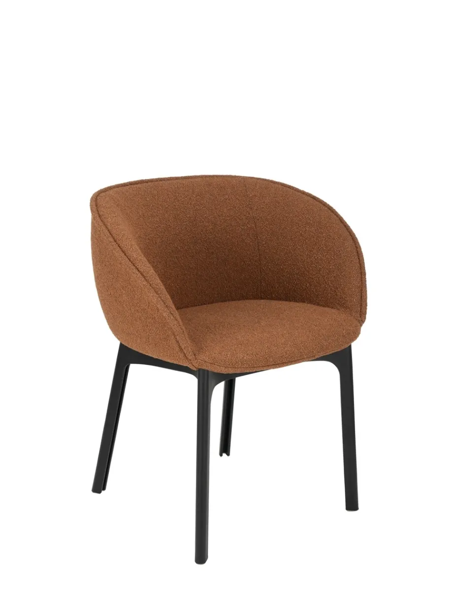 Eleganza e forme morbide: CHARLA è una poltroncina dining che abbraccia l’ospite con la sua seduta avvolgente. La poltroncina nasce con tutte le attenzioni per adattarsi a scenari contract e consumer, che si tratti di una breve pausa nella hall di un hotel o di una cena nel soggiorno di casa.Le gambe in materiale plastico riciclato, per un prodotto che unisce eleganza e attenzione all’ambiente, sono disponibili nel colore nero, mentre i rivestimenti sono in bouclé o tessuto contract mélange.