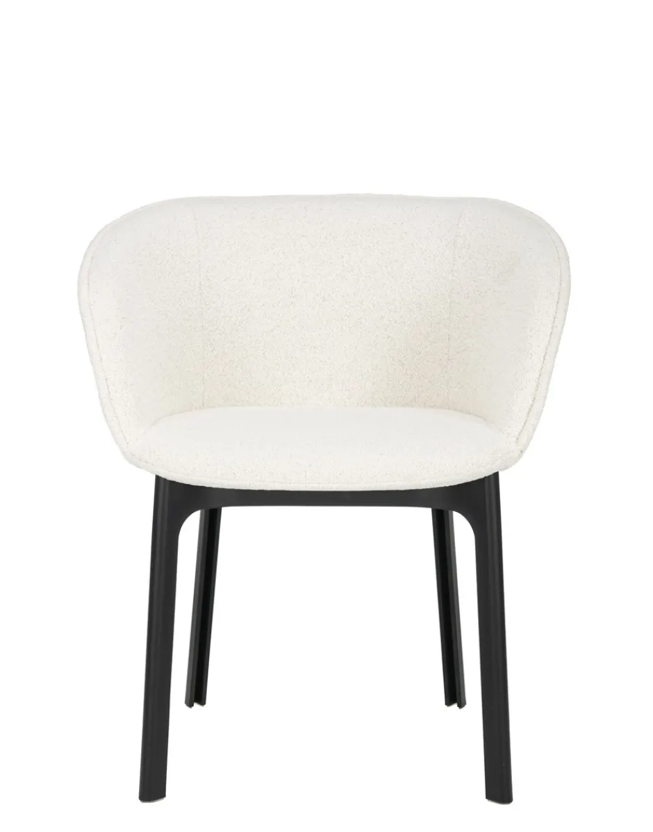 Eleganza e forme morbide: CHARLA è una poltroncina dining che abbraccia l’ospite con la sua seduta avvolgente. La poltroncina nasce con tutte le attenzioni per adattarsi a scenari contract e consumer, che si tratti di una breve pausa nella hall di un hotel o di una cena nel soggiorno di casa.Le gambe in materiale plastico riciclato, per un prodotto che unisce eleganza e attenzione all’ambiente, sono disponibili nel colore nero, mentre i rivestimenti sono in bouclé o tessuto contract mélange.