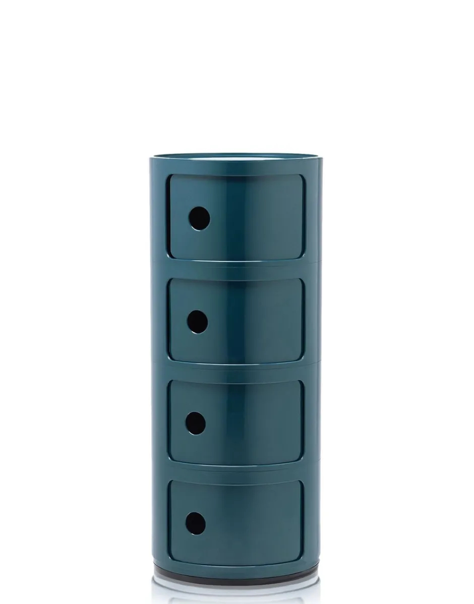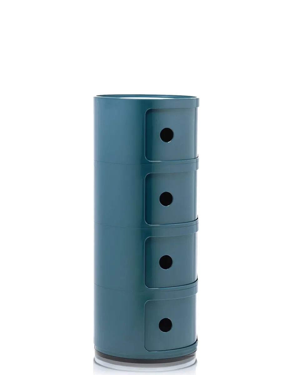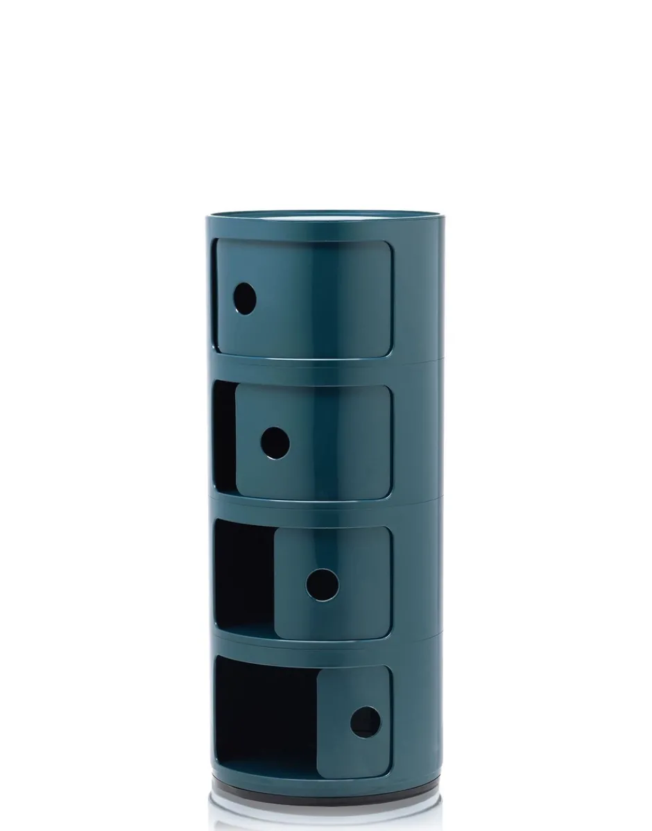 Gli elementi componibili sono stati progettati per rispondere a diverse esigenze d’uso e vivere in ogni ambiente della casa. I Componibili nati nel 1967 sono un classico senza tempo dell’arredamento, sono proposti oggi in forma rotonda con diametro da 32 cm. Grazie alle composizioni fisse da due, tre e quattro elementi risultano essere funzionali e pratici per ogni ambiente. Questo modello viene proposto in sei finiture glossy e una finitura silver opaca.