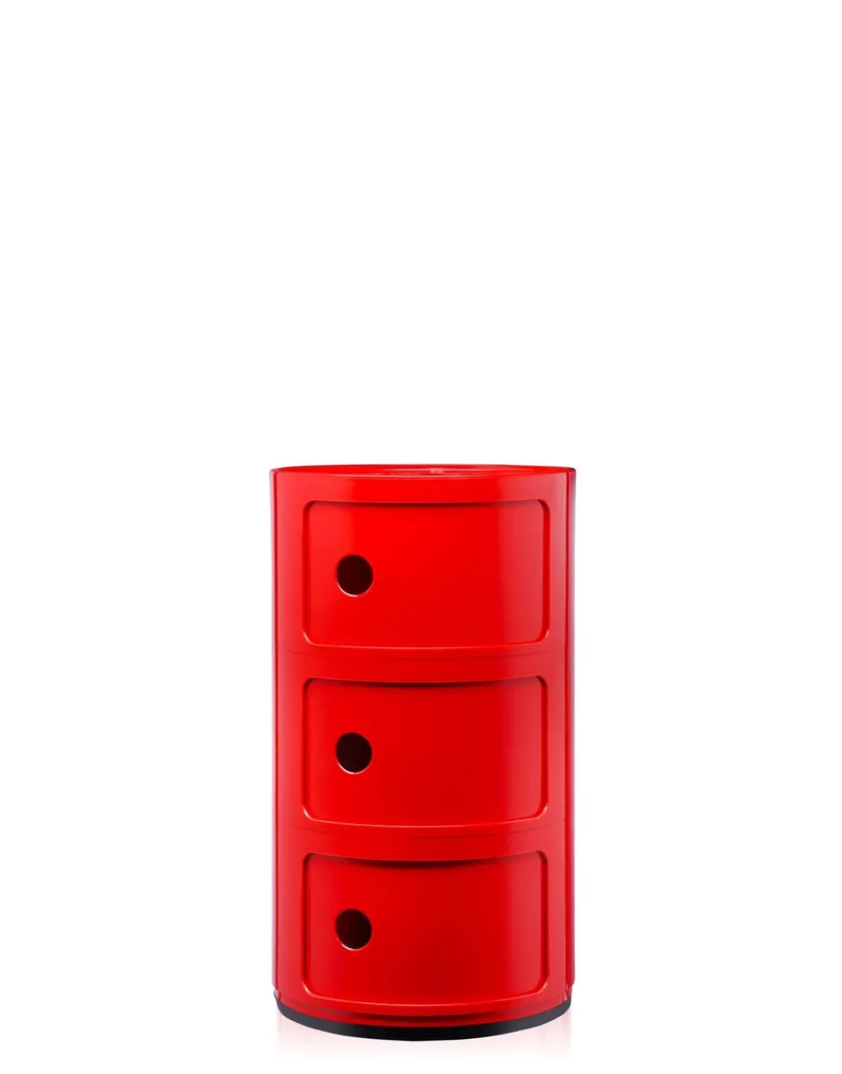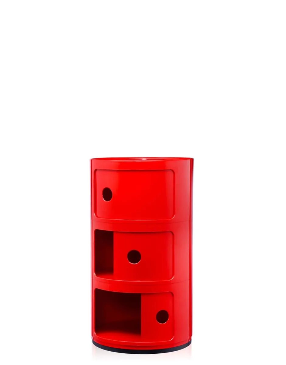 Gli elementi componibili sono stati progettati per rispondere a diverse esigenze d’uso e vivere in ogni ambiente della casa. I Componibili nati nel 1967 sono un classico senza tempo dell’arredamento, sono proposti oggi in forma rotonda con diametro da 32 cm. Grazie alle composizioni fisse da due, tre e quattro elementi risultano essere funzionali e pratici per ogni ambiente. Questo modello viene proposto in sei finiture glossy e una finitura silver opaca.