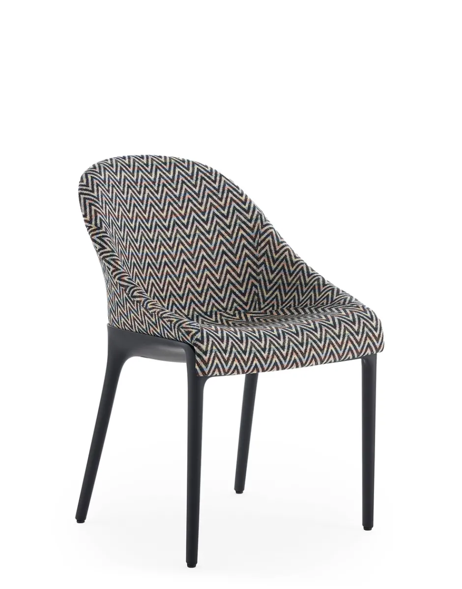 Il fascino discreto dell’eleganza. I tratti essenziali dello stile italiano con una seduta senza tempo che unisce il mondo dell’Haute Couture e il bon ton. Segni particolari: raffinata discrezione, morbidezza e fluidità.Sono due le versioni della poltroncina imbottita, ELEGANZA NIA ed ELEGANZA ELA: due forme sinuose e leggere sulle quali si modella come protagonista il tessuto, che ricopre morbidamente le linee della poltrona, sia in mélange sia in ecopelle, con gamba in bianco o nero.