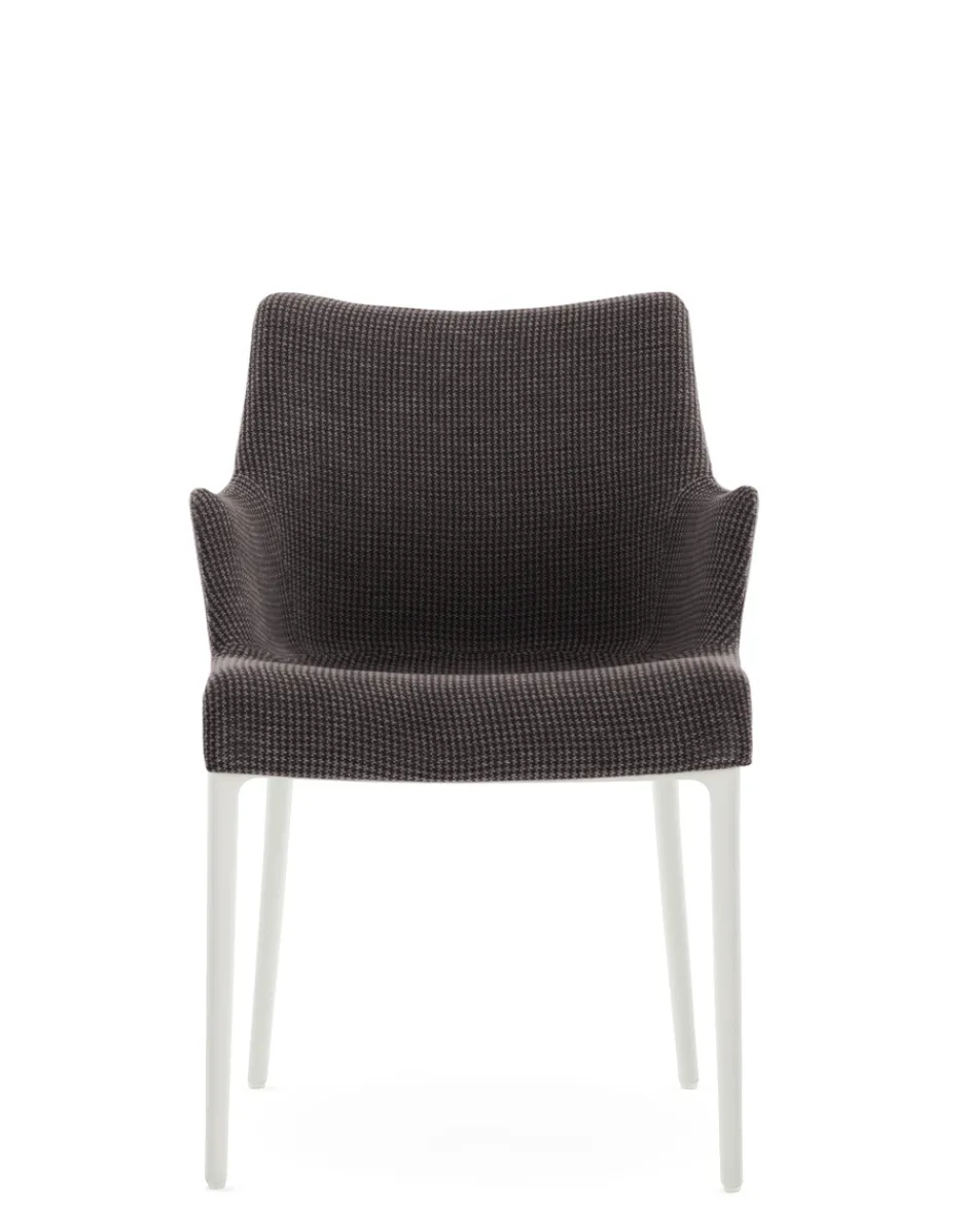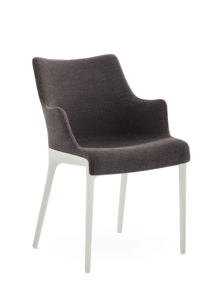 Il fascino discreto dell’eleganza. I tratti essenziali dello stile italiano con una seduta senza tempo che unisce il mondo dell’Haute Couture e il bon ton. Segni particolari: raffinata discrezione, morbidezza e fluidità.Sono due le versioni della poltroncina imbottita, ELEGANZA NIA ed ELEGANZA ELA: due forme sinuose e leggere sulle quali si modella come protagonista il tessuto, che ricopre morbidamente le linee della poltrona, sia in mélange sia in ecopelle, con gamba in bianco o nero.