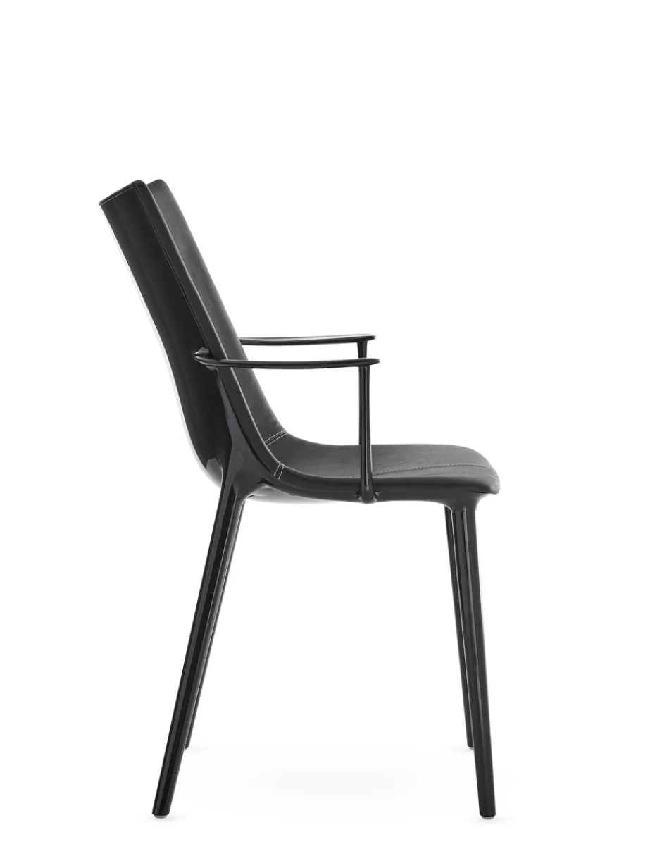 Philippe Starck ci conduce verso un nuovo vertice con la sedia H.H.H. – HER HIGHEST HIGHNESS. Con un’eleganza e un’imponenza grafica senza pari, H.H.H. definisce l’essenza stessa dell’essere umano che interagisce con essa, costringendolo a prendere una posizione. Un oggetto che va oltre il mero concetto di seduta, trasformando ogni momento trascorso su di essa in un momento di vera e propria regalità. La struttura è in materiale riciclato e la seduta è disponibile in diverse finiture: pelle riciclata con trattamento di concia green, nei colori nero e cuoio, ecofriendly texture proveniente in parte da materiale riciclato e in parte da fonti rinnovabili nei colori nero e tabacco e nella finitura lucida super glossy nei colori bianco, nero, bordeaux, ruggine, senape, blu e verde.Ma H.H.H. si eleva al di sopra delle semplici funzioni pratiche di una sedia, diventando un emblema di stile e che incanta e ispira chiunque vi si avvicini grazie all’edizione Kartell x Liberty, rivestita in sei tessuti Liberty con vivaci stampe floreali.Fedele al suo essere pioniera nella ricerca di nuove e diverse forme di innovazione tecnologica, Kartell ha inoltre deciso di fare un ulteriore passo in questa direzione, sperimentando una nuova tecnica di “graphic impression” in cui, con uno stampaggio altamente tecnologico, vengono proposti 4 pattern floreali e geometrici in diverse versioni cromatiche.