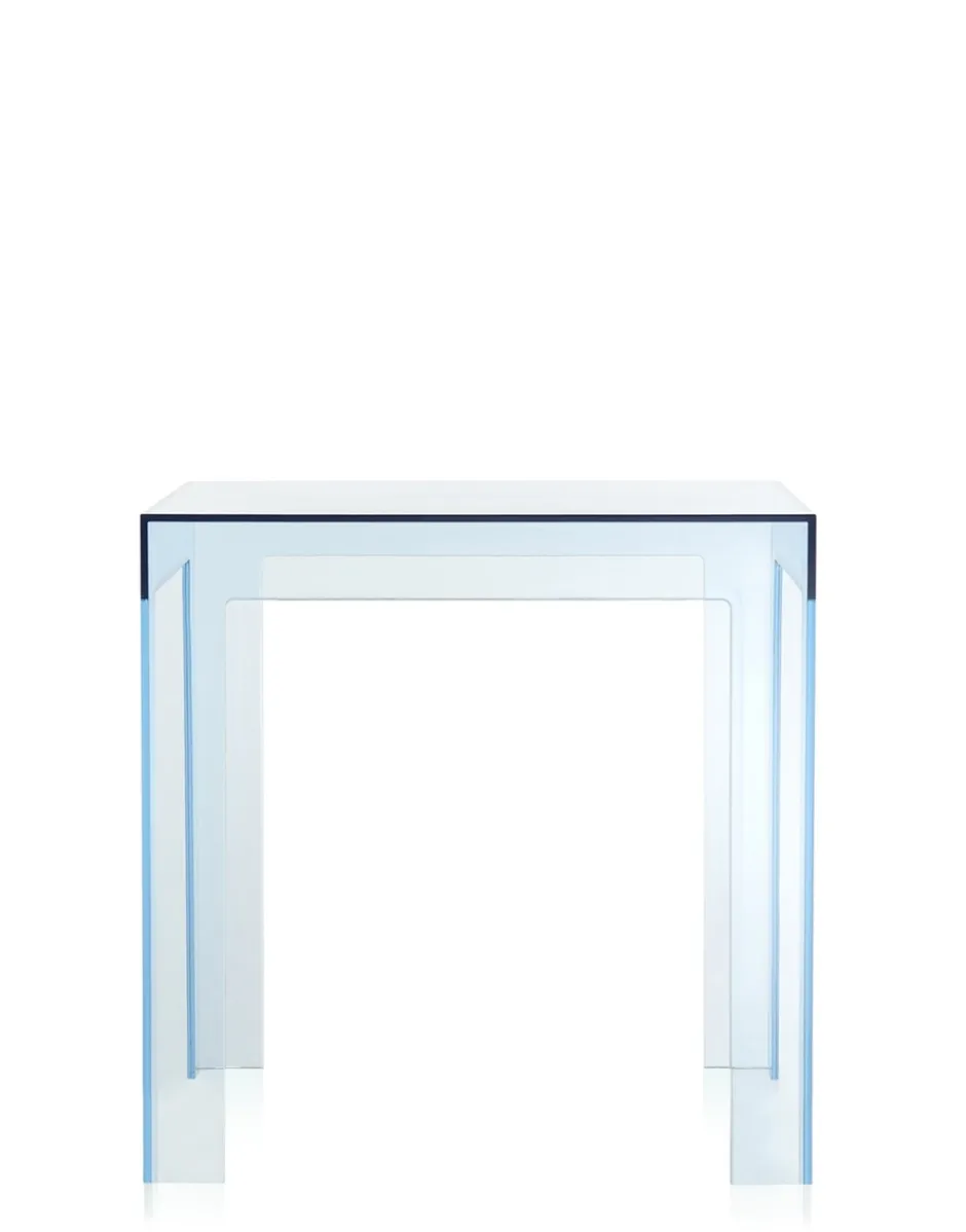 Un tavolino completamente trasparente dalle dimensioni ridotte e perfette: 40x40x40 cm. Colorato, pratico, sicuro e funzionale, Jolly è un side-table versatile.