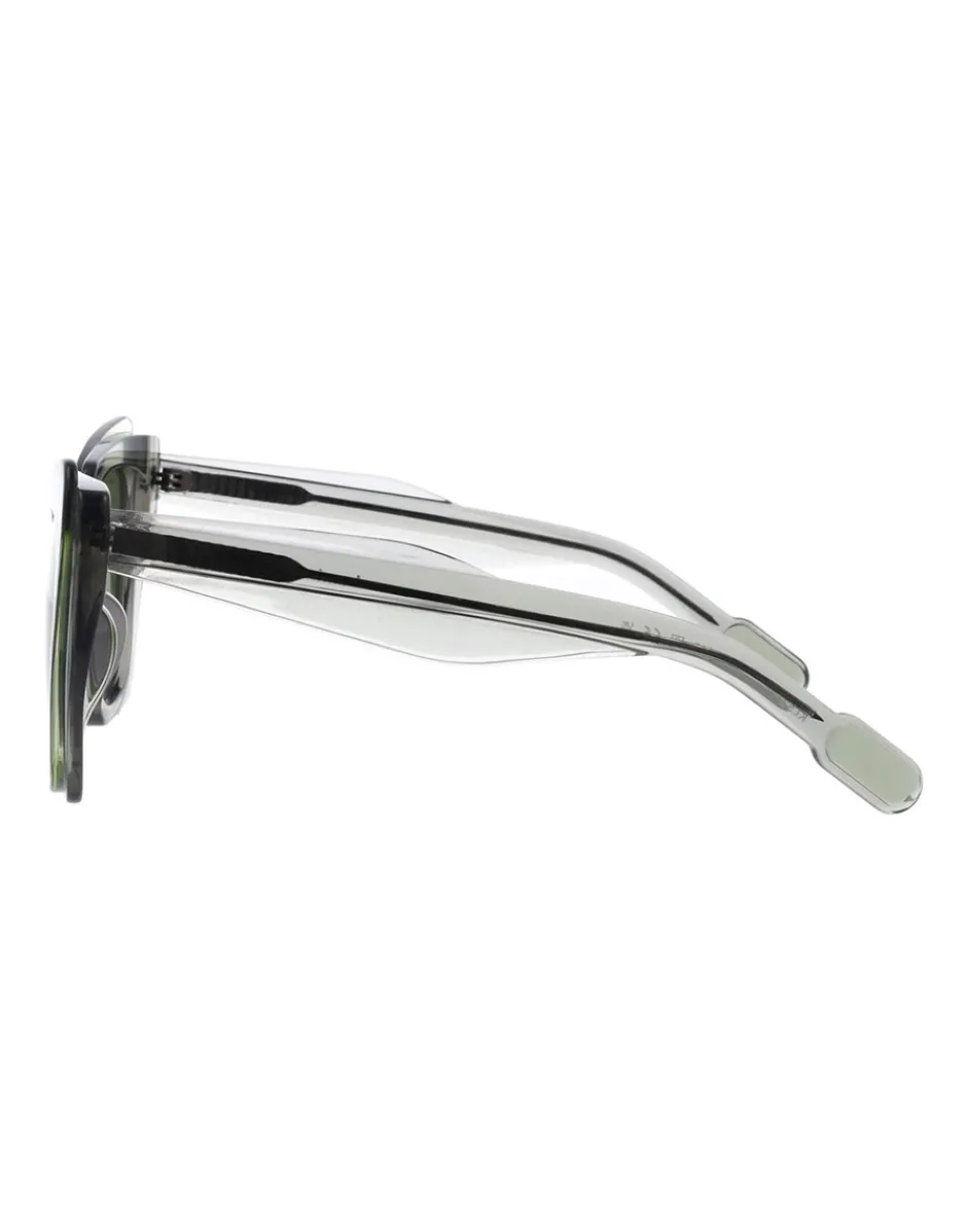Uno + Uno = Tre è la prima idea che ha generato la collezione Kartell Eyewear. Lamina nasce dalla combinazione di due silhouette diverse ma armoniose fuse l’una nell’altra per dare vita a un terzo segno grafico che, in un gioco di sovrapposizioni, genera dimensioni multiple a seconda delle angolature di luce e diverse sfumature di colore generate dall’accostamento dei materiali trasparenti. La contaminazione delle forme e degli spessori rimanda ai più iconici prodotti Kartell con un chiaro richiamo alla tecnologia produttiva del brand.