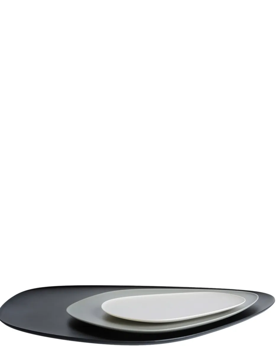 Il set di 3 piatti/ vassoi di diverse dimensioni “Namaste” è caratterizzato da un design organico e asimmetrico che ricorda quello di sassi piatti e da una paletta cromatica molto naturale. I piatti possono essere abbinati in modo da creare gradevoli nuance ton-sur-ton o contrasti più decisi.n