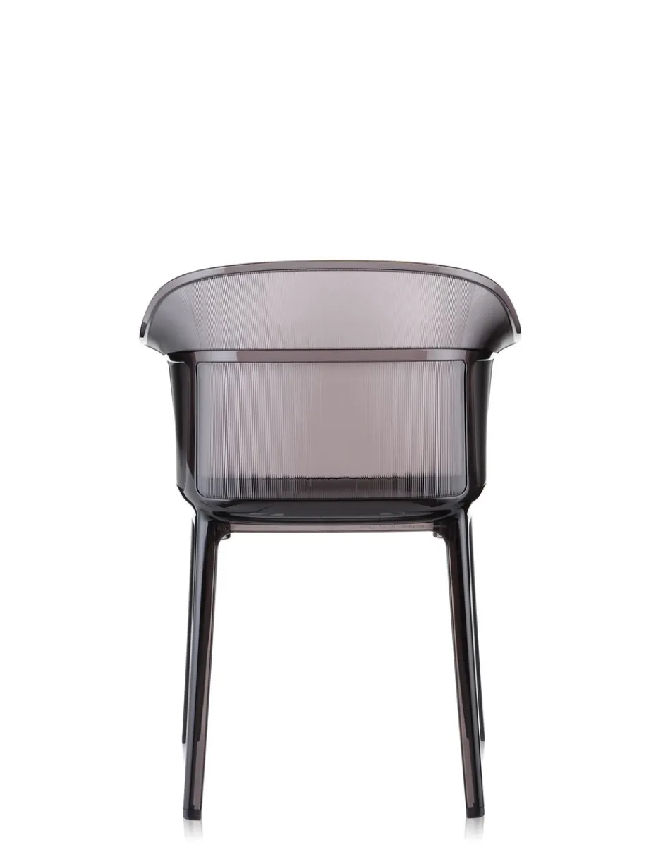 Papyrus si rifà all’archetipo delle vecchie sedie in midollino, quando la struttura aveva il tratto deciso e molto segnato. La poltroncina abbina alla parte di sostegno traslucida una sottilissima zigrinatura verticale, che ripercorre l’esterno dello schienale arrotondato, dalle forme morbide e avvolgenti.