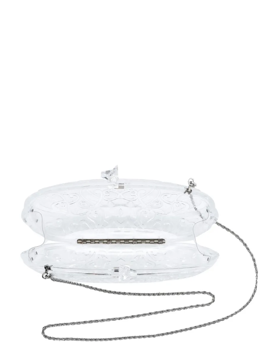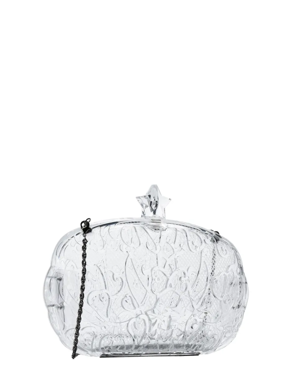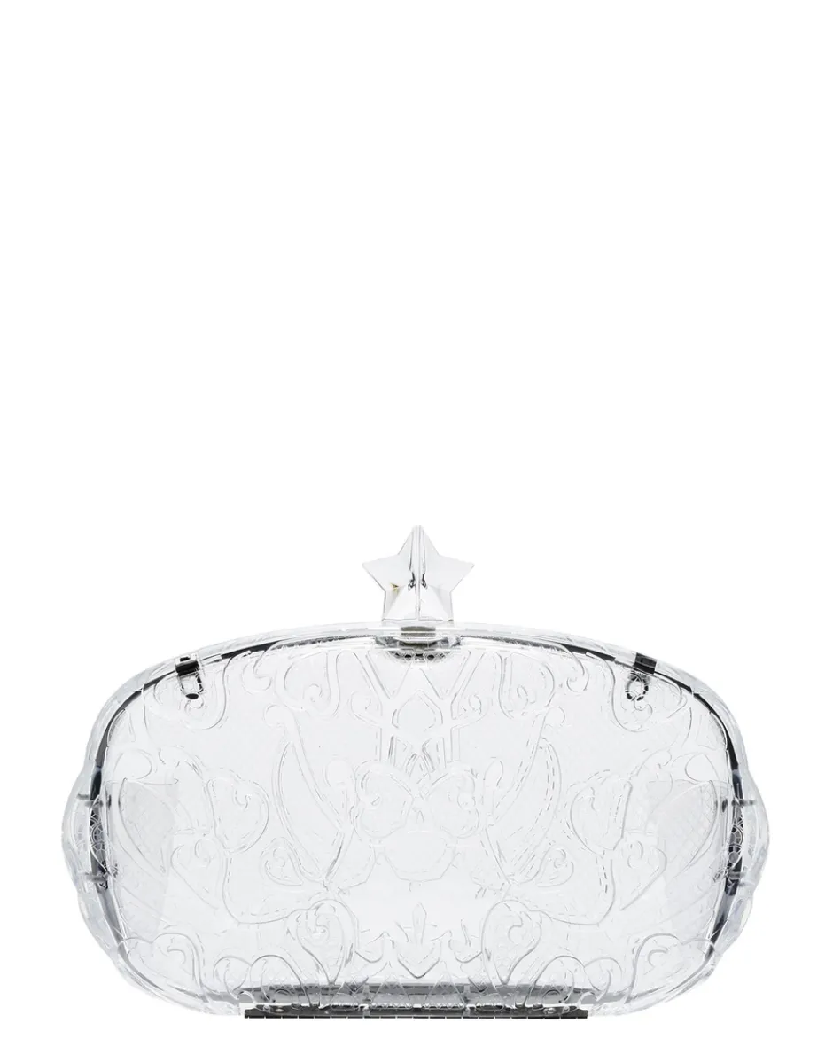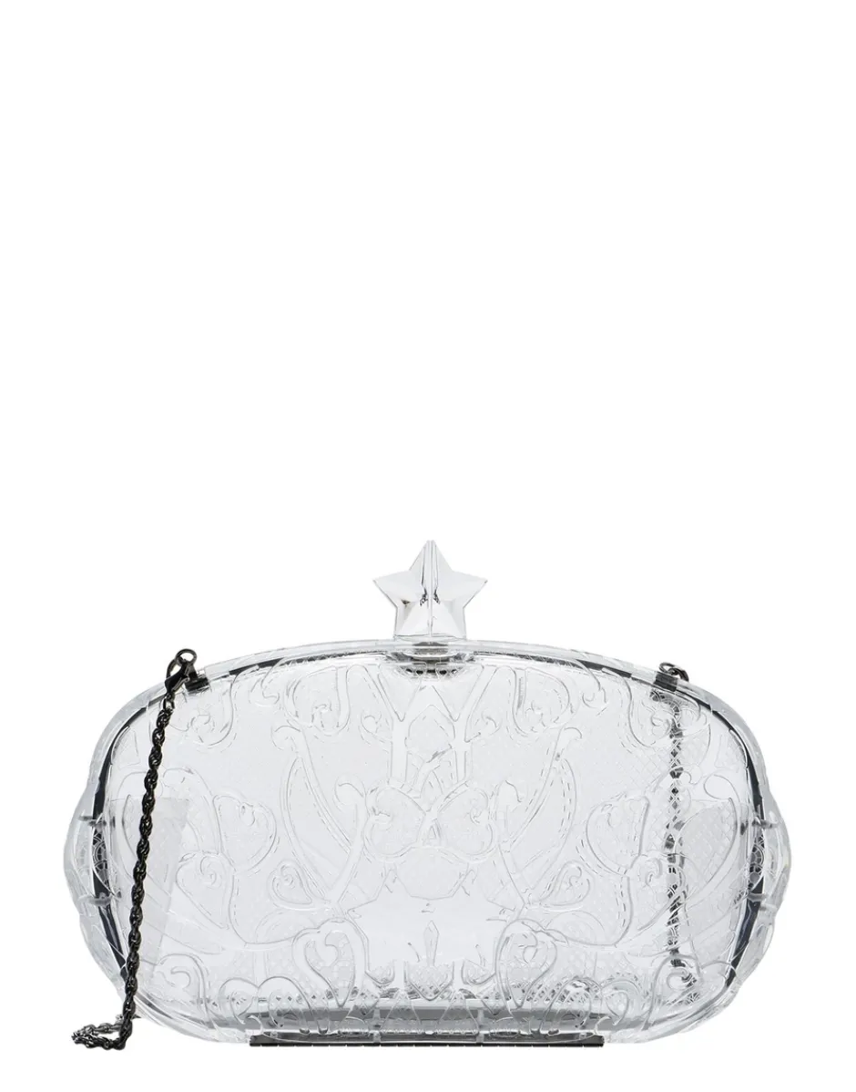 La clutch Rosas è caratterizzata da una particolare apertura con una stella tridimensionale e fornita di catena a tracolla.