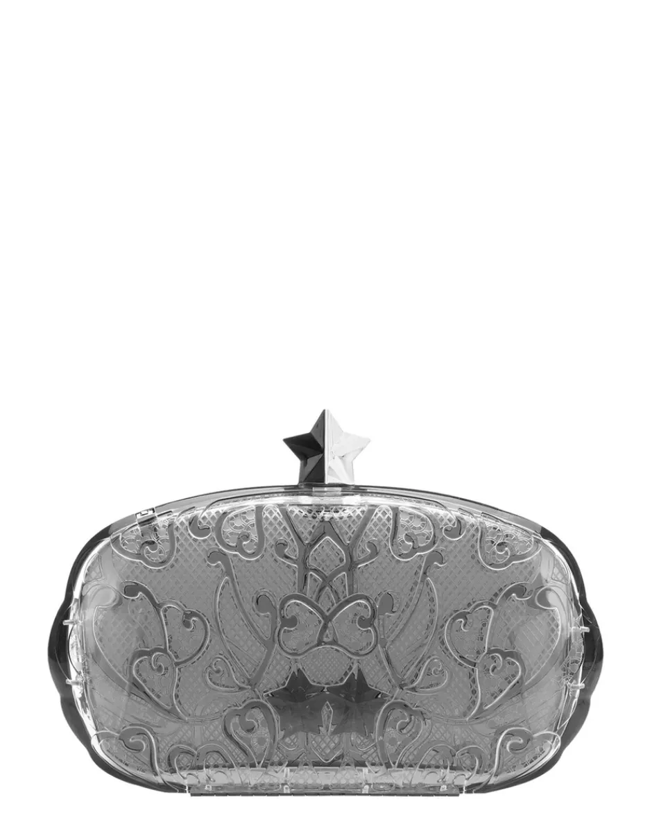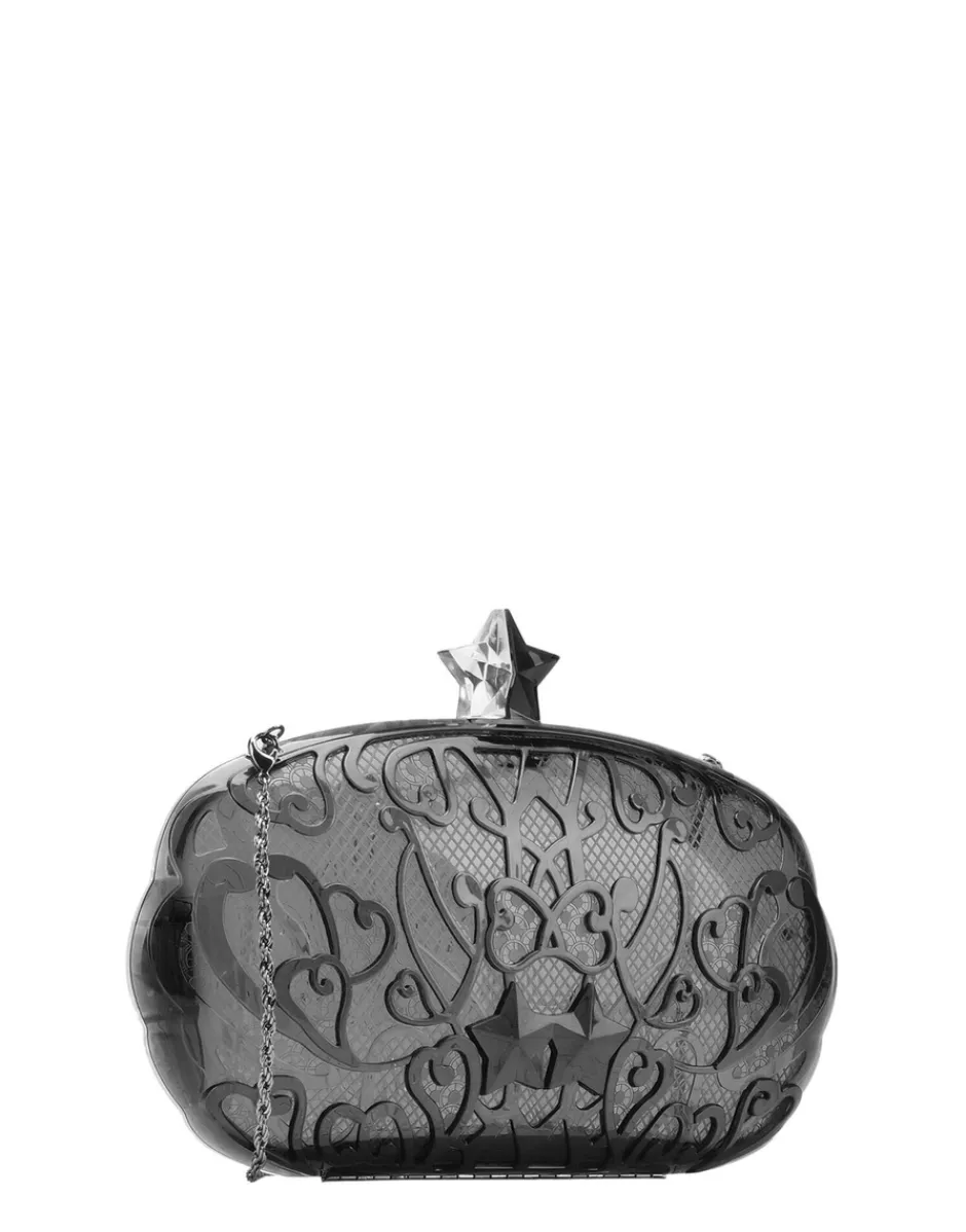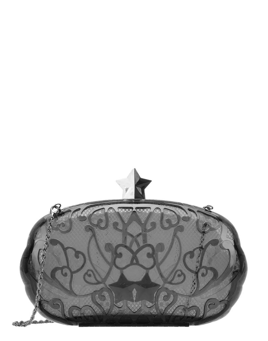 La clutch Rosas è caratterizzata da una particolare apertura con una stella tridimensionale e fornita di catena a tracolla.