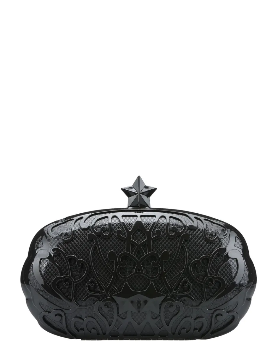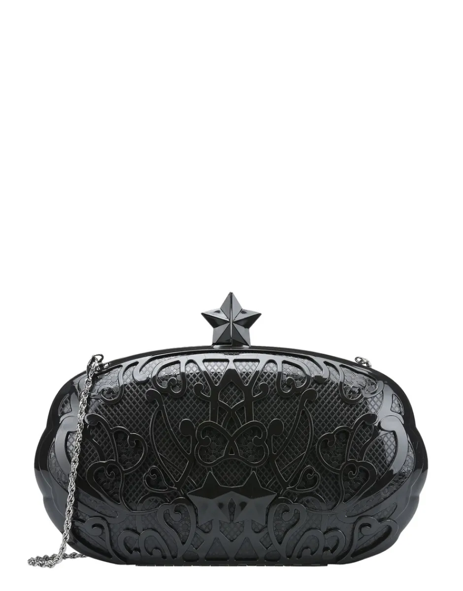 La clutch Rosas è caratterizzata da una particolare apertura con una stella tridimensionale e fornita di catena a tracolla.