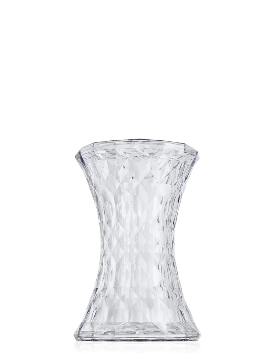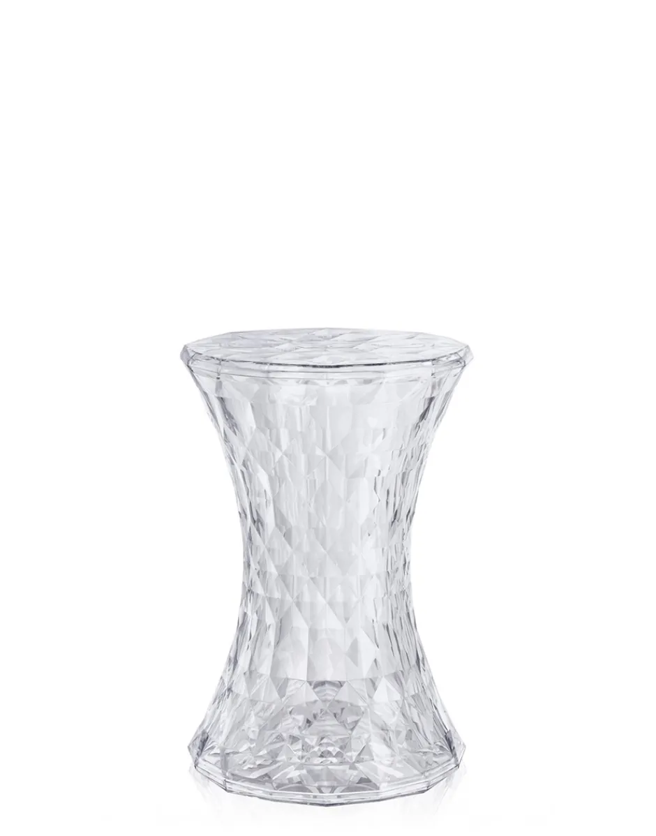 Stone è uno sgabello basso realizzato con una forma essenziale, lineare e simmetrica, che richiama quella di una clessidra, la sua superficie ha però un aspetto irregolare, costituita da tante sfaccettature geometriche riflettenti che creano un effetto di luce da cui nasce un gioco di colori molto particolare, che la rendono simile ad un diamante.