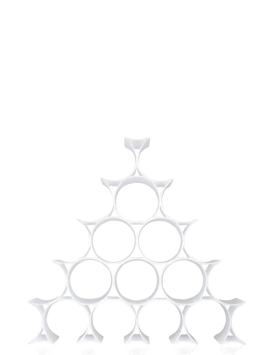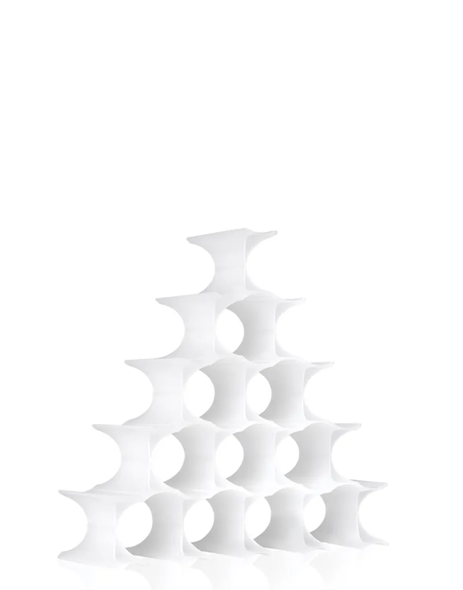 Infinity è un portabottiglie colorato, curvilineo e componibile. Gli elementi che formano il portabottiglie si possono agganciare tra loro per formare un numero indefinito di cerchi all’interno dei quali si possono riporre le bottiglie.