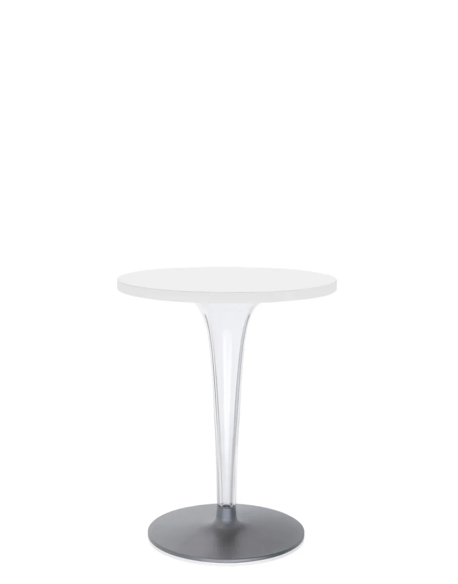 La linea di tavolini TopTop si contraddistingue per la gamba che può essere trasparente a sezione rotonda o quadrata, con la superficie sfaccettata e un’anima in metallo.
