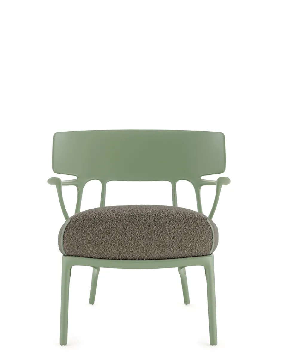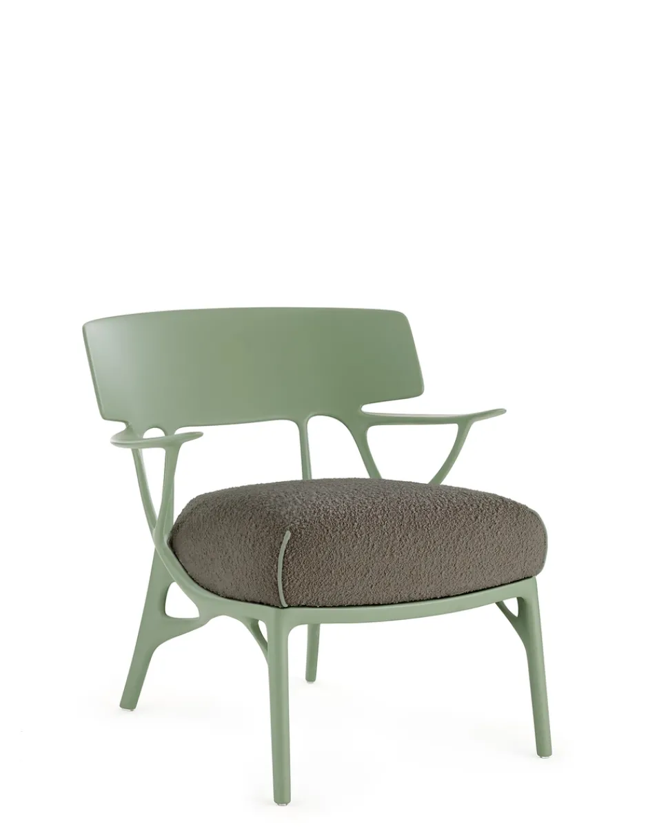 A.I. LOUNGE è la nuova poltrona della famiglia A.I. che coniuga materiali sostenibili e comfort con unsegno grafico che guarda al futuro e al benessere nei nostri luoghi dell’abitare. Una poltrona da salotto in cui lelinee, tratto distintivo della collezione, si mescolano alla massima comodità della seduta. Disponibile nei coloribianco, nero, arancio e grigio e nelle versioni con e senza cuscino per utilizzo indoor e outdoor.Il valore aggiunto di A.I. consiste nell’essere la prima famiglia di prodotti concepita dall’Intelligenza Artificiale che ha risposto agli input ricevuti dal designer (Philippe Starck) e al know-how dall’azienda (Kartell). Nello specifico, pensiero creativo, know-how aziendale e intelligenza artificiale si sono fuse per concepire un modello di sedia totalmente elaborato da un algoritmo che rispetta le richieste originali del designer e dell’azienda ovvero essere un prodotto, confortevole, che abbia i requisiti strutturali di resistenza e solidità richiesti, mantenendo anche uno dei valori principali di Kartell: essere un prodotto industriale stampato ad iniezione di grande qualità estetica.