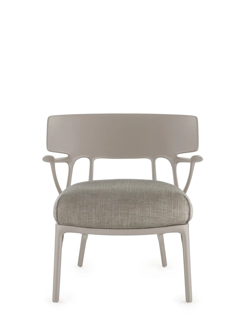 A.I. LOUNGE è la nuova poltrona della famiglia A.I. che coniuga materiali sostenibili e comfort con unsegno grafico che guarda al futuro e al benessere nei nostri luoghi dell’abitare. Una poltrona da salotto in cui lelinee, tratto distintivo della collezione, si mescolano alla massima comodità della seduta. Disponibile nei coloribianco, nero, arancio e grigio e nelle versioni con e senza cuscino per utilizzo indoor e outdoor.Il valore aggiunto di A.I. consiste nell’essere la prima famiglia di prodotti concepita dall’Intelligenza Artificiale che ha risposto agli input ricevuti dal designer (Philippe Starck) e al know-how dall’azienda (Kartell). Nello specifico, pensiero creativo, know-how aziendale e intelligenza artificiale si sono fuse per concepire un modello di sedia totalmente elaborato da un algoritmo che rispetta le richieste originali del designer e dell’azienda ovvero essere un prodotto, confortevole, che abbia i requisiti strutturali di resistenza e solidità richiesti, mantenendo anche uno dei valori principali di Kartell: essere un prodotto industriale stampato ad iniezione di grande qualità estetica.