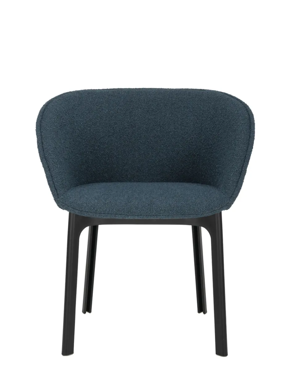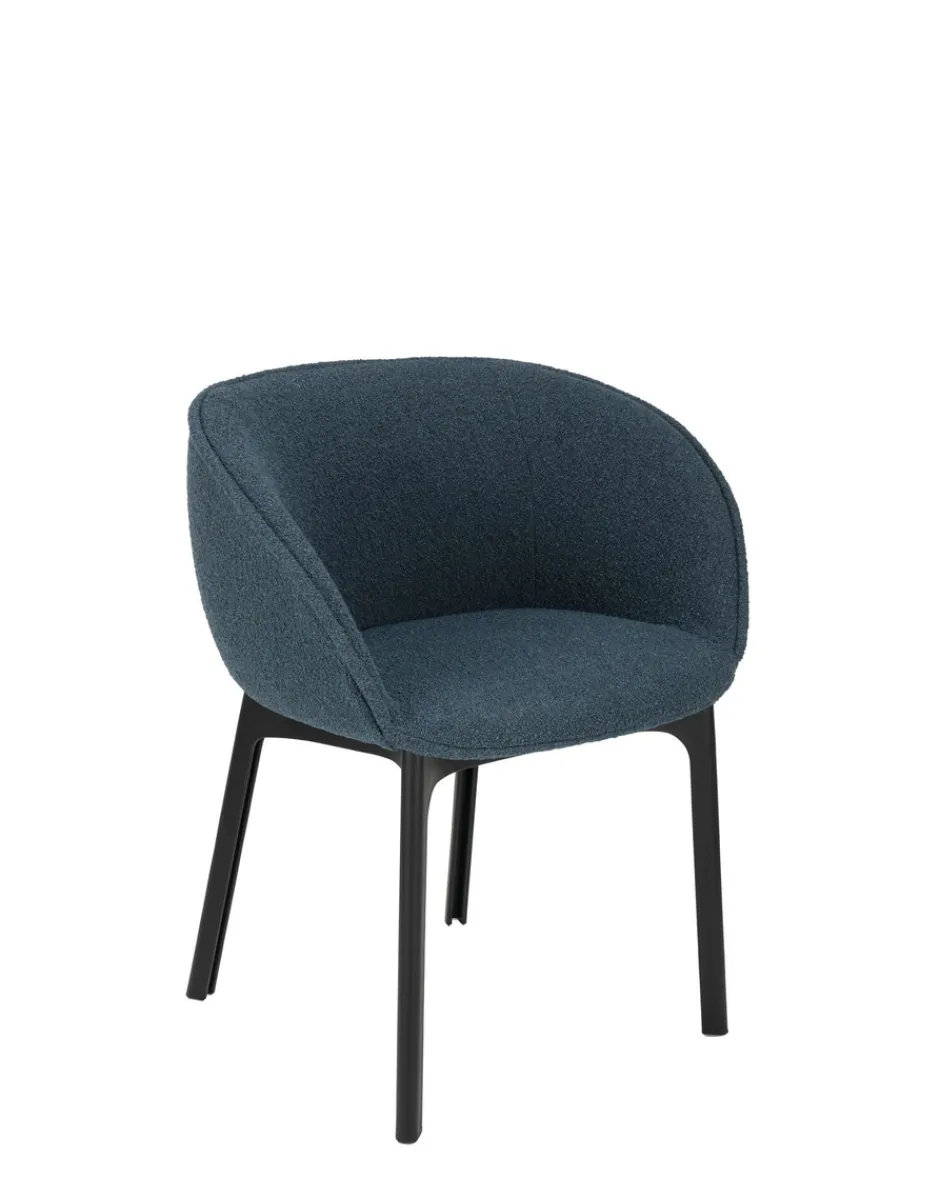 Eleganza e forme morbide: CHARLA è una poltroncina dining che abbraccia l’ospite con la sua seduta avvolgente. La poltroncina nasce con tutte le attenzioni per adattarsi a scenari contract e consumer, che si tratti di una breve pausa nella hall di un hotel o di una cena nel soggiorno di casa.Le gambe in materiale plastico riciclato, per un prodotto che unisce eleganza e attenzione all’ambiente, sono disponibili nel colore nero, mentre i rivestimenti sono in bouclé o tessuto contract mélange.