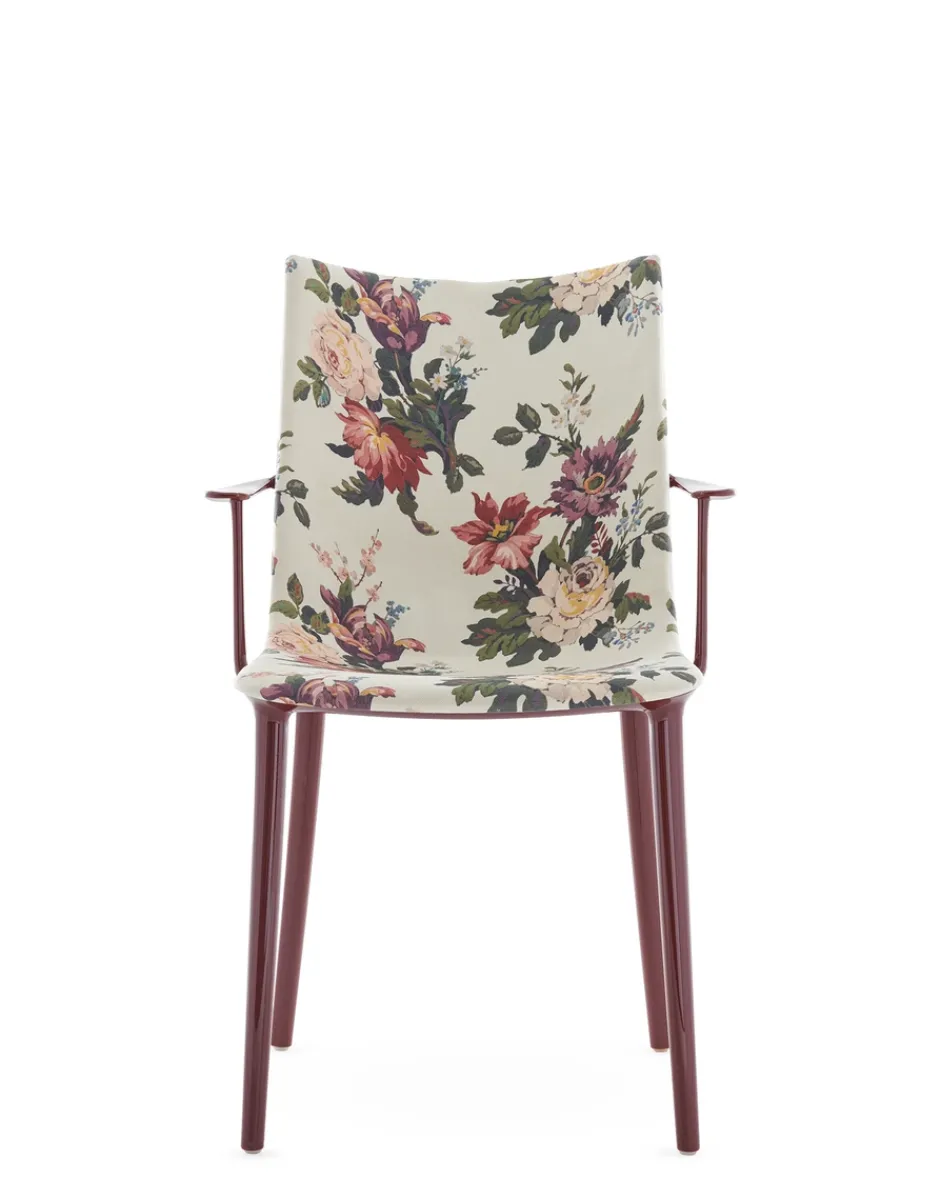 Philippe Starck ci conduce verso un nuovo vertice con la sedia H.H.H. – HER HIGHEST HIGHNESS. Con un’eleganza e un’imponenza grafica senza pari, H.H.H. definisce l’essenza stessa dell’essere umano che interagisce con essa, costringendolo a prendere una posizione. Un oggetto che va oltre il mero concetto di seduta, trasformando ogni momento trascorso su di essa in un momento di vera e propria regalità. La struttura è in materiale riciclato e la seduta è disponibile in diverse finiture: pelle riciclata con trattamento di concia green, nei colori nero e cuoio, ecofriendly texture proveniente in parte da materiale riciclato e in parte da fonti rinnovabili nei colori nero e tabacco e nella finitura lucida super glossy nei colori bianco, nero, bordeaux, ruggine, senape, blu e verde.Ma H.H.H. si eleva al di sopra delle semplici funzioni pratiche di una sedia, diventando un emblema di stile e che incanta e ispira chiunque vi si avvicini grazie all’edizione Kartell x Liberty, rivestita in sei tessuti Liberty con vivaci stampe floreali.Fedele al suo essere pioniera nella ricerca di nuove e diverse forme di innovazione tecnologica, Kartell ha inoltre deciso di fare un ulteriore passo in questa direzione, sperimentando una nuova tecnica di “graphic impression” in cui, con uno stampaggio altamente tecnologico, vengono proposti 4 pattern floreali e geometrici in diverse versioni cromatiche.
