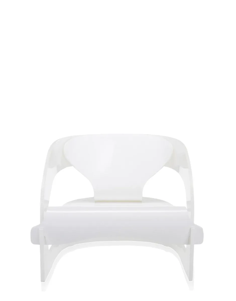 Autentico simbolo del design degli anni ‘60 e celebre anche per essere stata l’unico pezzo prodotto da Kartell interamente in legno, la tecnologia contemporanea ha permesso di realizzare il medesimo prodotto utilizzando il PMMA, sfruttando una produzione industriale, per riprenderne la sagoma curva e sinuosa della seduta.