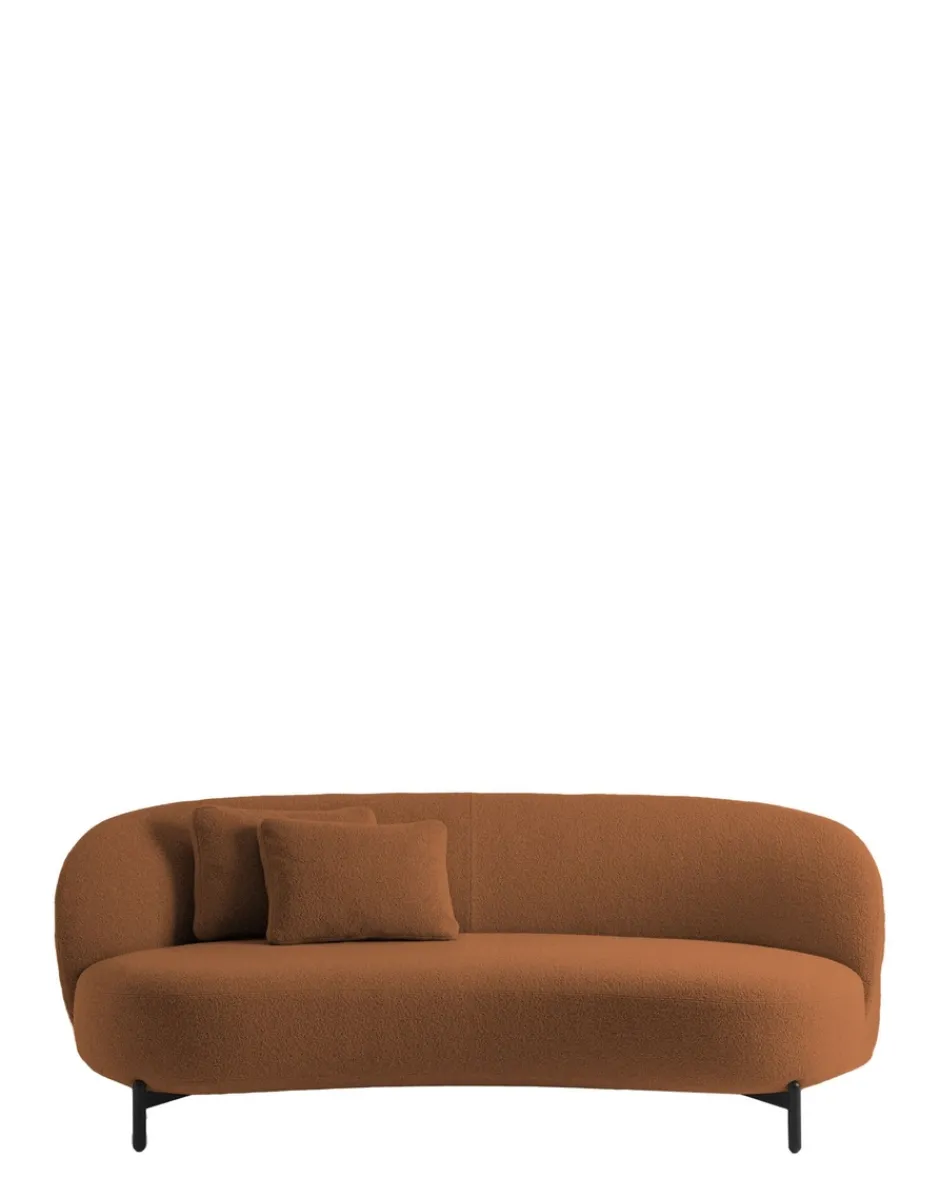LUNAM è un’avvolgente collezione living che racconta le atmosfere sognanti di un paesaggio lunare. Un’essenziale struttura in metallo verniciato sostiene i volumi generosi degli imbottiti. Divano, poltrona e pouf sono proposti in morbido bouclé o tessuto mélange – opzione contract – nelle tonalità del verde oliva, del petrolio, della terra di Siena e dei grigi.