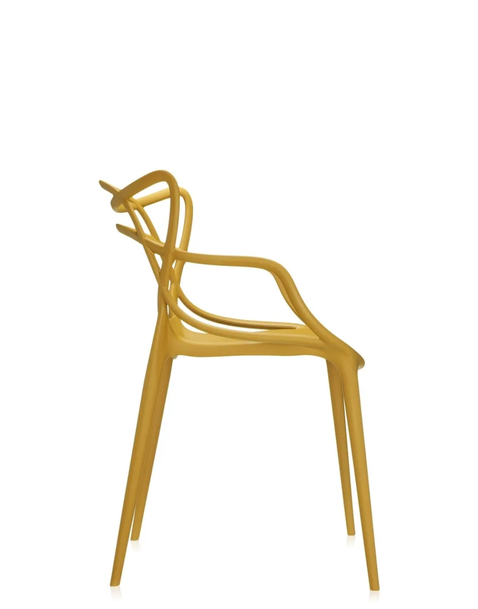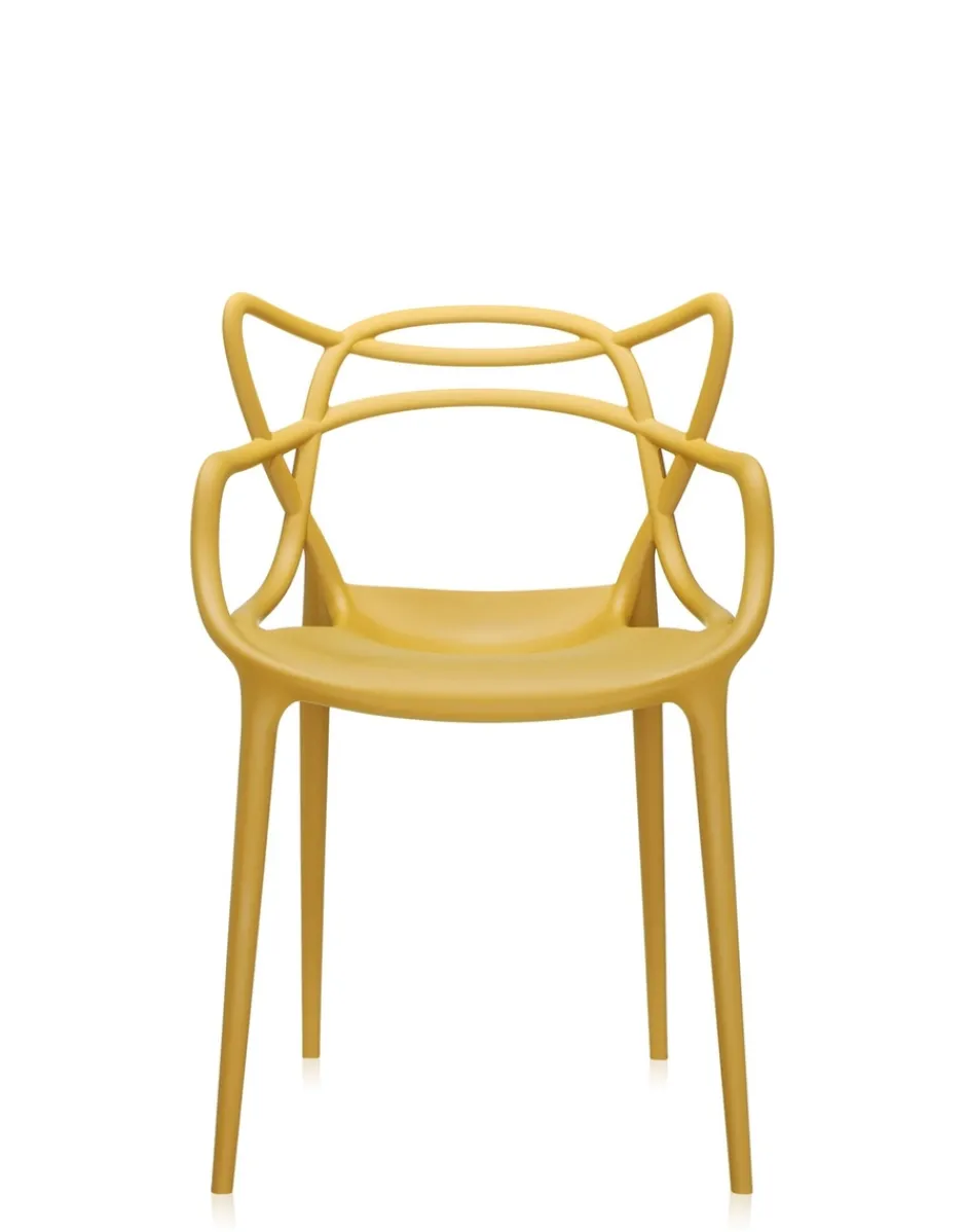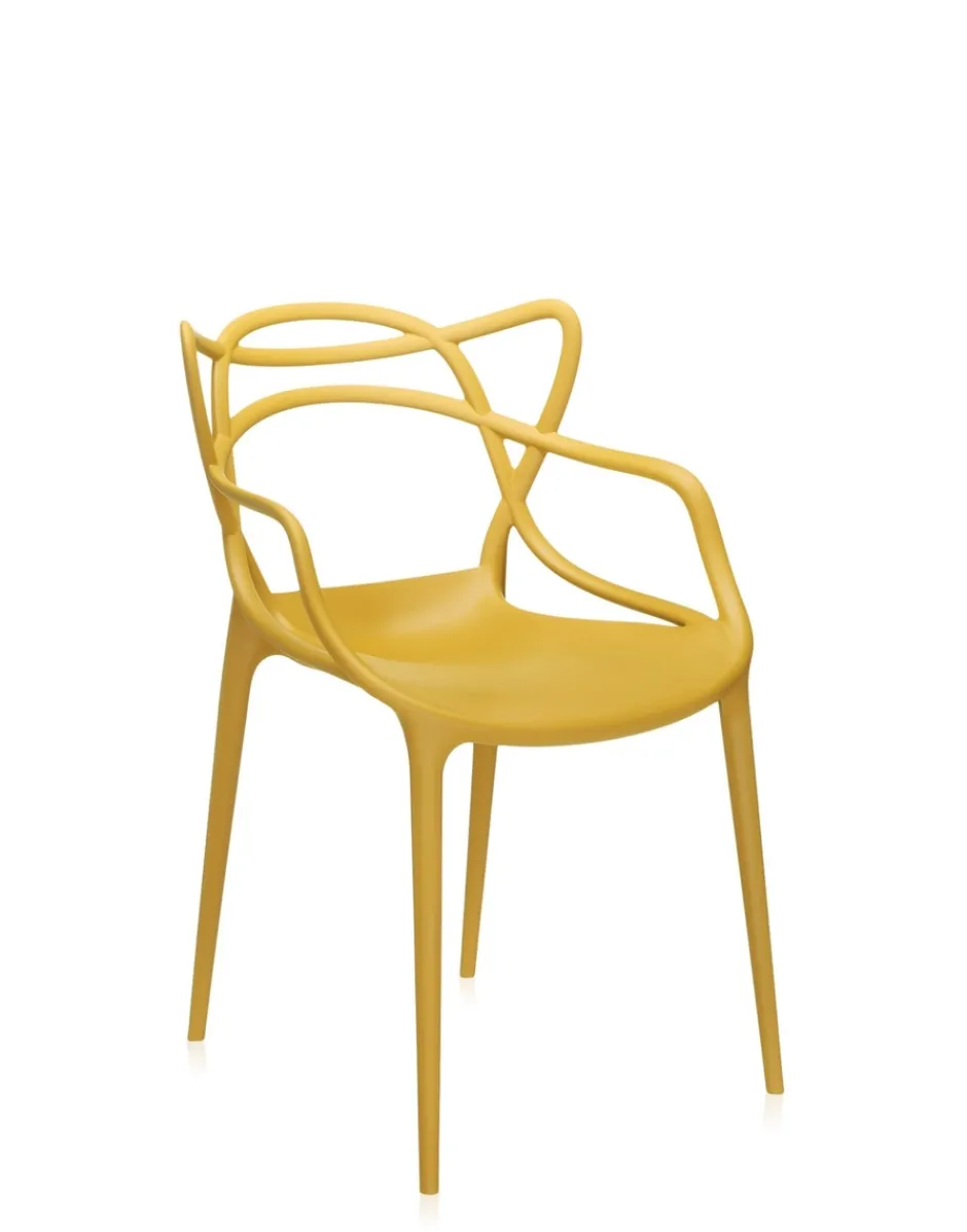 La sedia Masters è un acuto omaggio a tre sedie-simbolo, rilette e reinterpretate dal genio creativo di Starck. La “Serie 7” di Arne Jacobsen, la “Tulip Armchair” di Eero Saarinen e la “Eiffel Chair” di Charles Eames intrecciano le inconfondibili silhouette in un ibrido sinuoso, per dare vita a una fusione di stili originale e accattivante. Leggera e pratica, Masters può essere utilizzata anche all’esterno. Per un effetto più prezioso è proposta anche in finiture metallizzate.