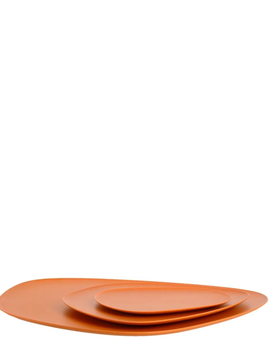 Il set di 3 piatti/ vassoi di diverse dimensioni “Namaste” è caratterizzato da un design organico e asimmetrico che ricorda quello di sassi piatti e da una paletta cromatica molto naturale. I piatti possono essere abbinati in modo da creare gradevoli nuance ton-sur-ton o contrasti più decisi.n