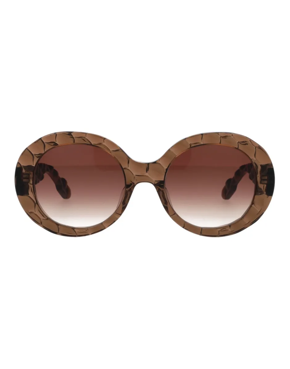 Uno sguardo perennemente affascinante su come si viaggia attraverso gli oggetti. SQUAME ripensa i materiali storici del corno e del guscio di tartaruga trasformandoli in una nuova materia. Da ogni angolo in cui si guarda, la luce della montatura viene rifratta in un angolo unico per far sembrare l’oggetto monocromatico in contrasto di tono.