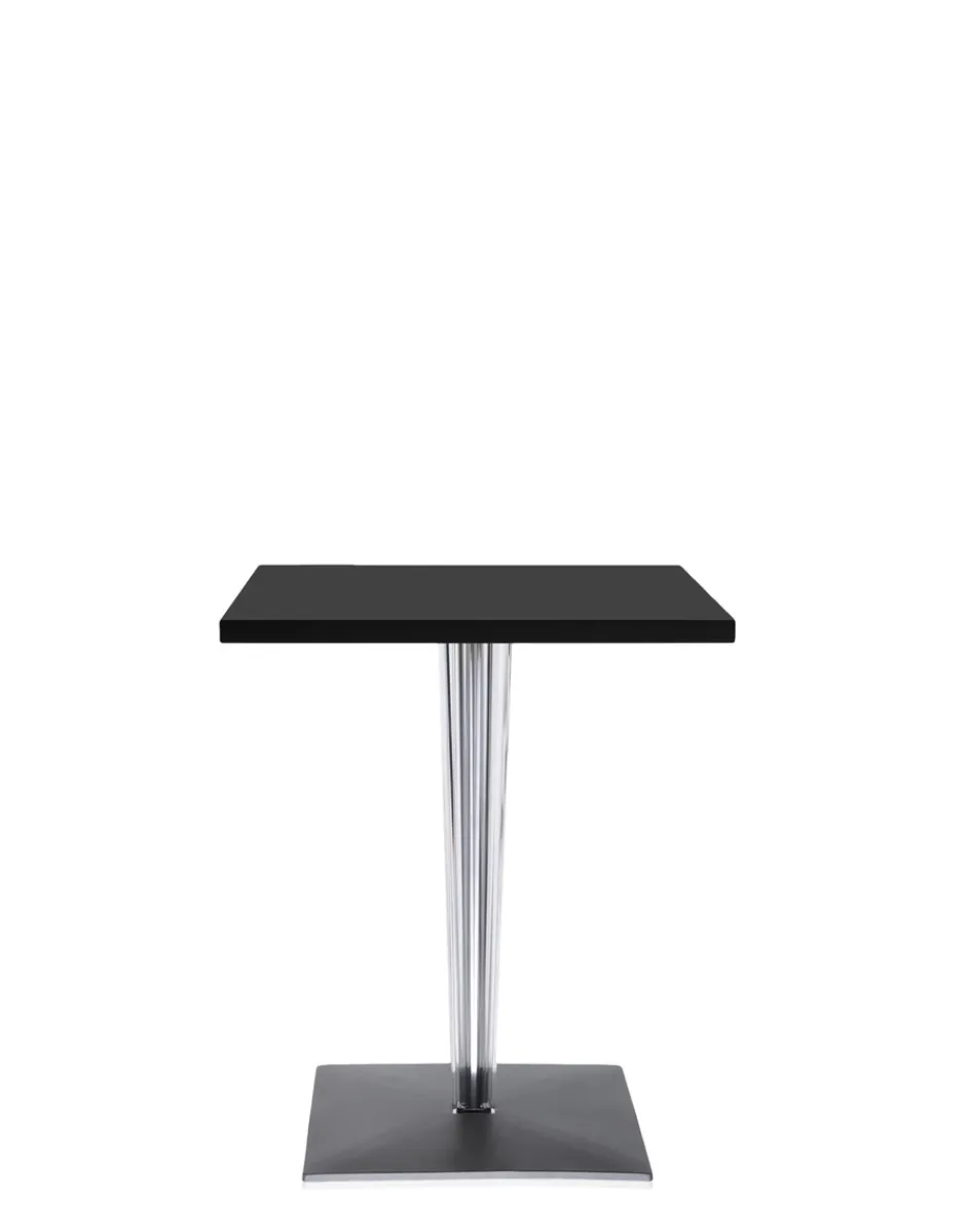 La linea di tavolini TopTop si contraddistingue per la gamba che può essere trasparente a sezione rotonda o quadrata, con la superficie sfaccettata e un’anima in metallo.
