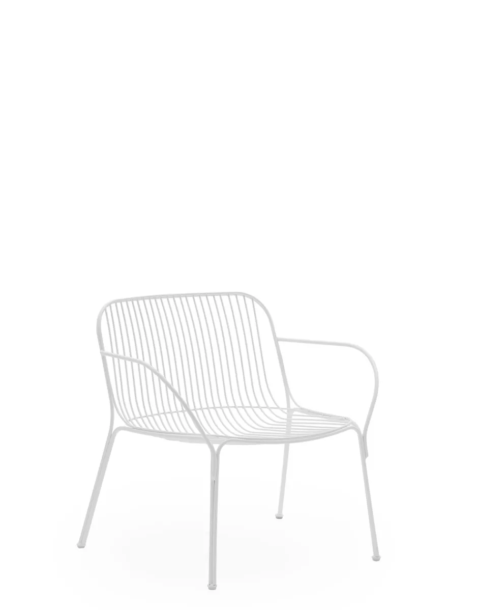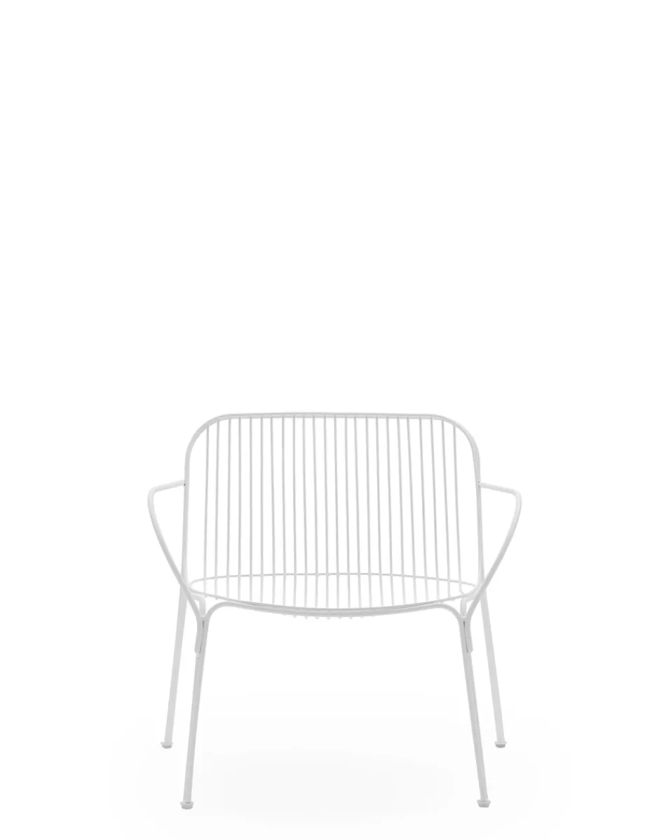 HIRAY gioca con il metallo, tra i materiali piùimportanti nella ridefinizione green del catalogo Kartell, lavorandolo con la tecnica del filo saldato. Il risultato è un segno essenziale e funzionalista e allo stesso tempo intriso di emozione. I fili di metallo disegnano pezzi dalla struttura ben definita ma leggera: sedia, sedia con braccioli, tavolino bistrot, poltrona, divano e side table. I colori della collezione sono bianco, bordeaux, nero e verde.