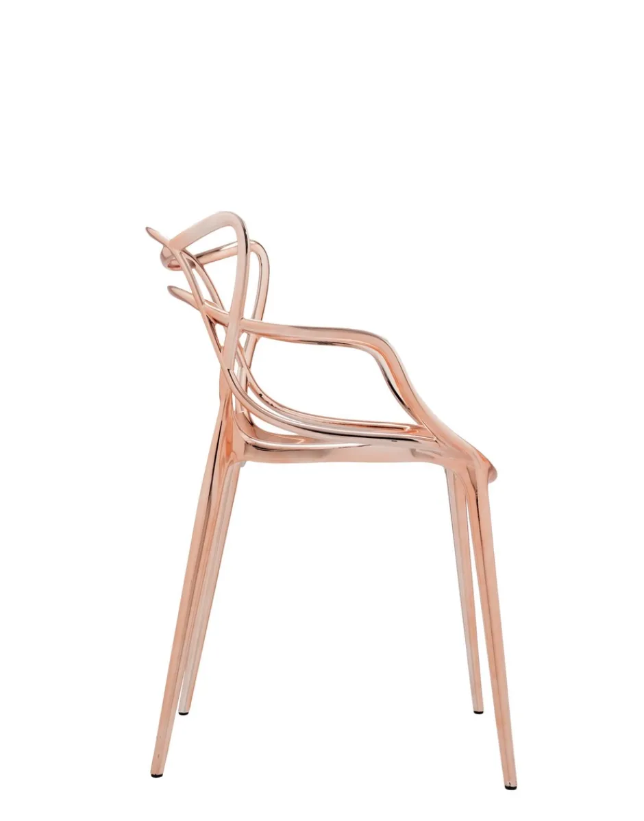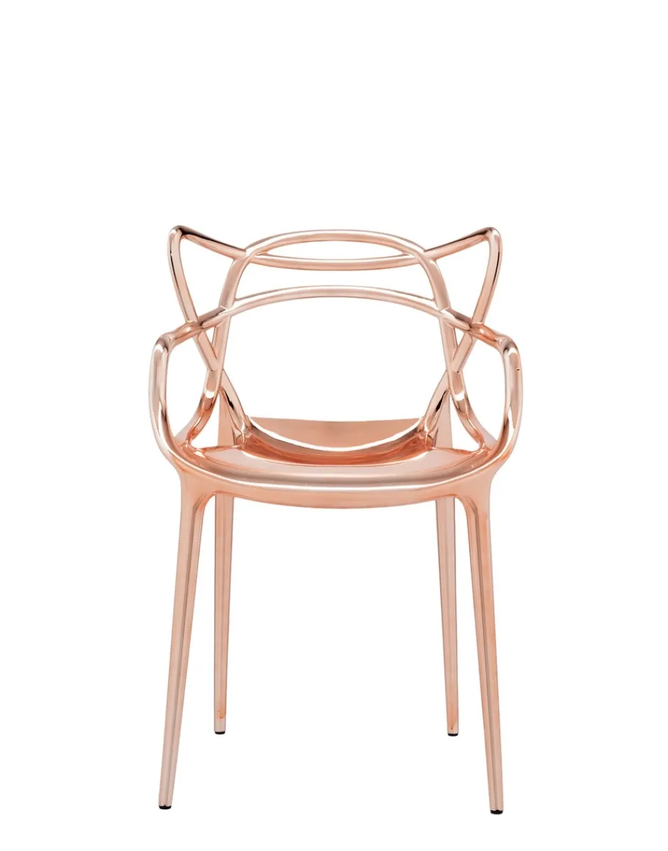 La sedia Masters è un acuto omaggio a tre sedie-simbolo, rilette e reinterpretate dal genio creativo di Starck. La “Serie 7” di Arne Jacobsen, la “Tulip Armchair” di Eero Saarinen e la “Eiffel Chair” di Charles Eames intrecciano le inconfondibili silhouette in un ibrido sinuoso, per dare vita a una fusione di stili originale e accattivante. Leggera e pratica, Masters può essere utilizzata anche all’esterno. Per un effetto più prezioso è proposta anche in finiture metallizzate.