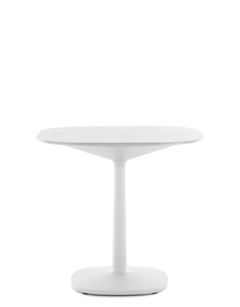 Multiplo è un’ampia famiglia di tavoli, trasversale nei suoi impieghi, e pensata per consentire la personalizzazione giocando sulle forme (quadrata stondata, tonda e ovale) e l’abbinamento di basi (base centrale, a due, tre o quattro razze) e piani (in gres tinta unita o finitura marmo e vetro).