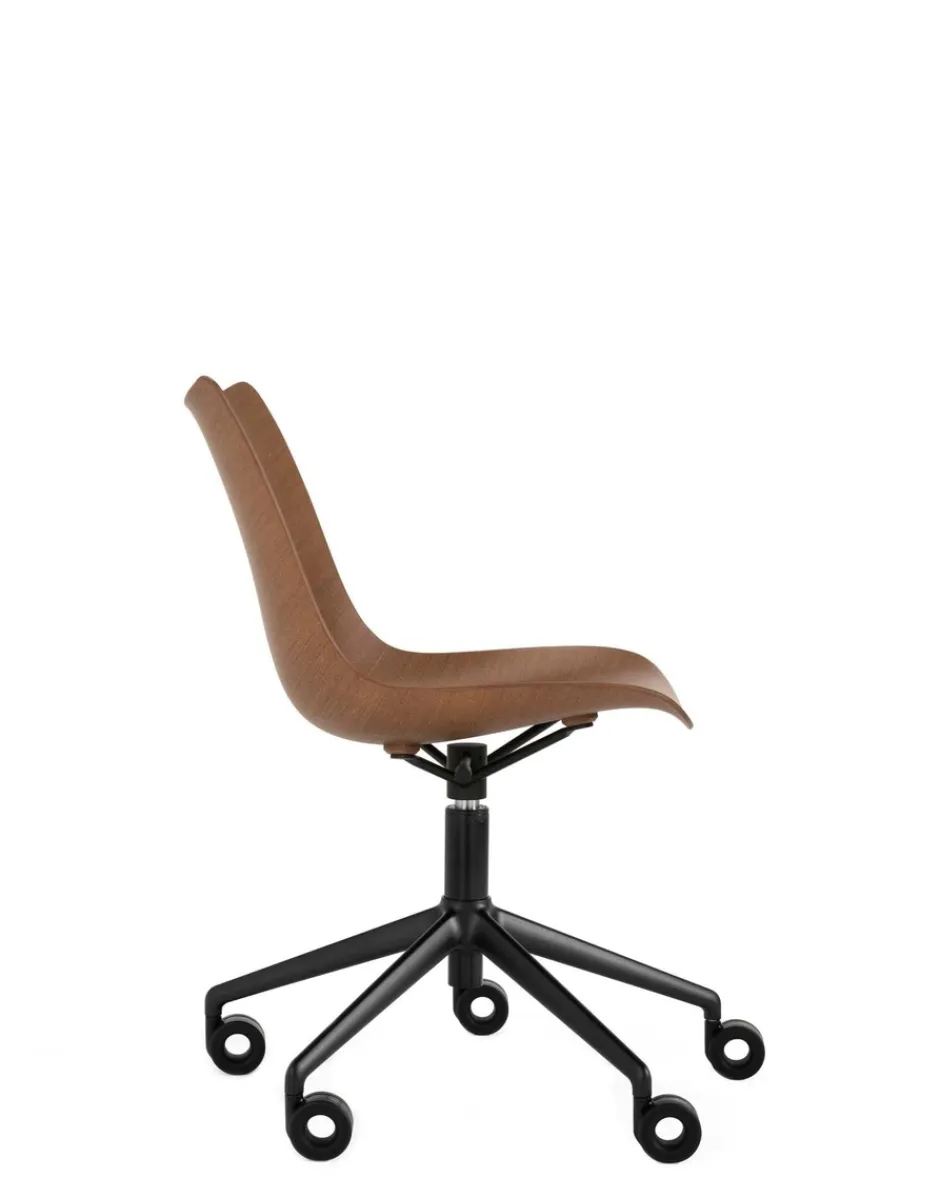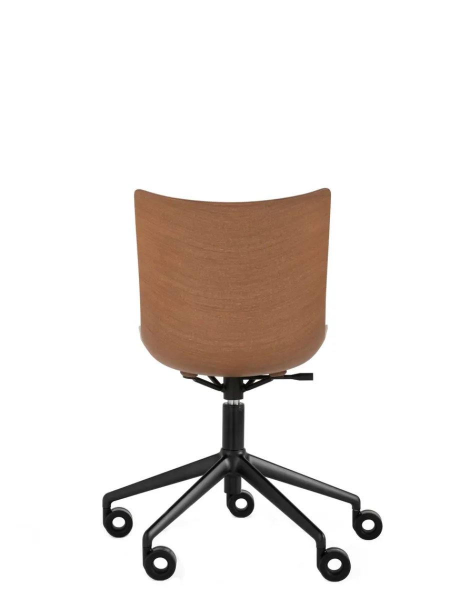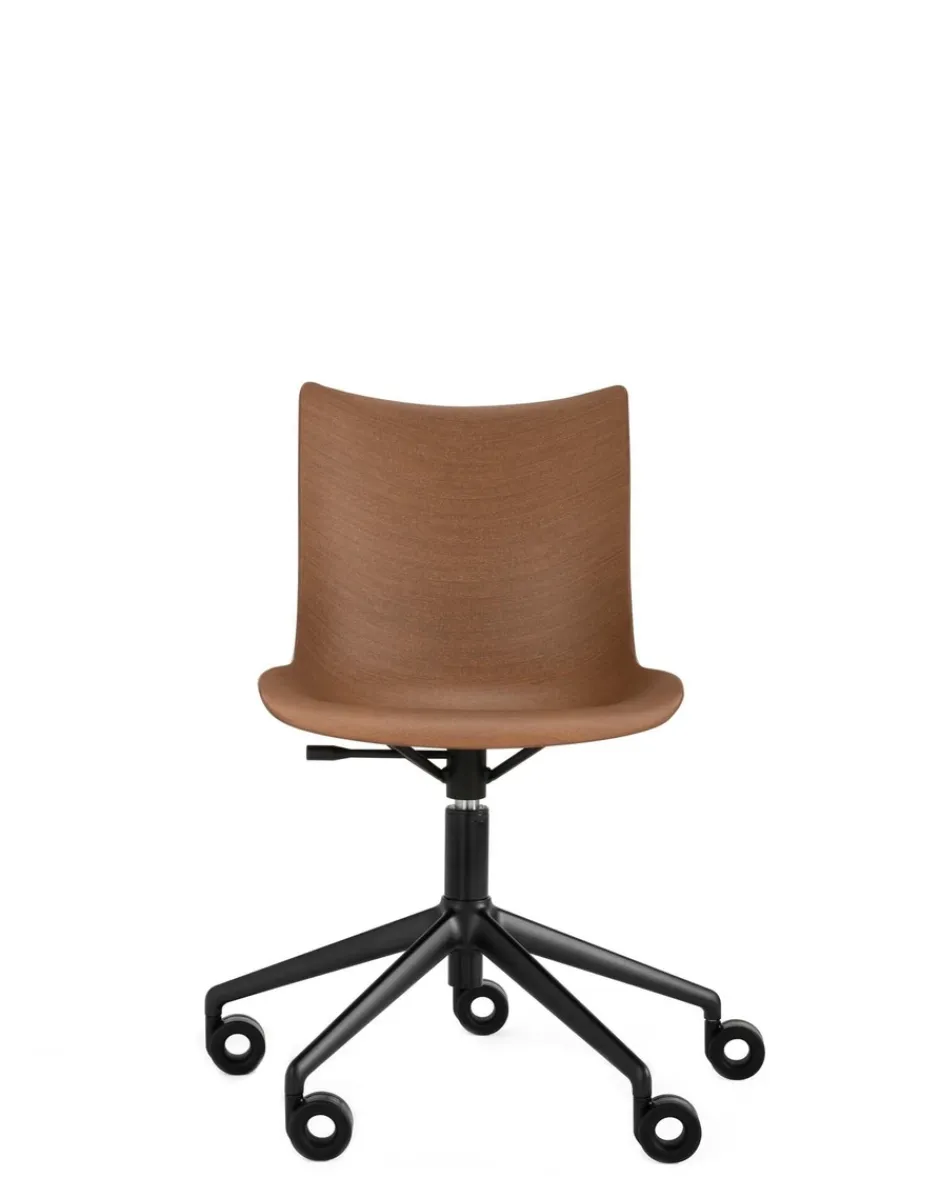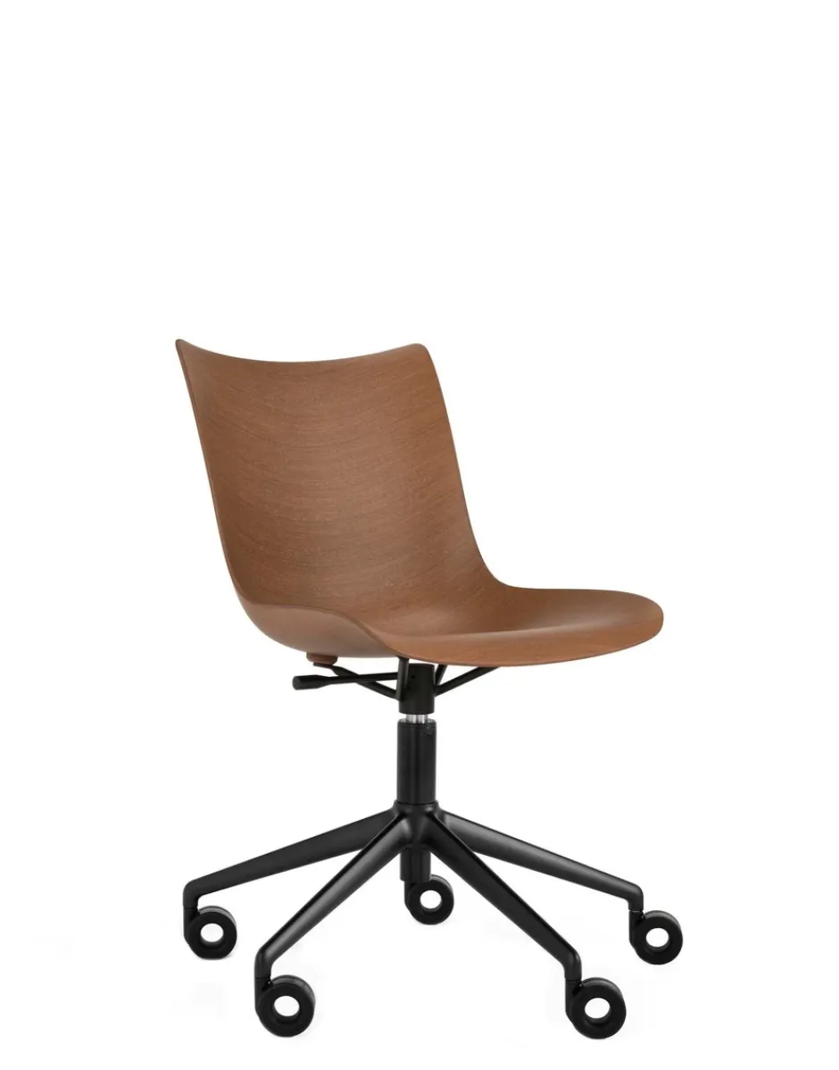 La famiglia di poltroncine si arricchisce della nuova versione girevole a rotelle. P/wood è caratterizzata da una lavorazione unica del legno che unisce un’eleganza senza tempo a forme contemporanee ed è disponibile in tre varianti di colore: legno chiaro con seduta bianca e struttura cromo; legno scuro con seduta nera e struttura cromo e in legno scuro nero con struttura nera.