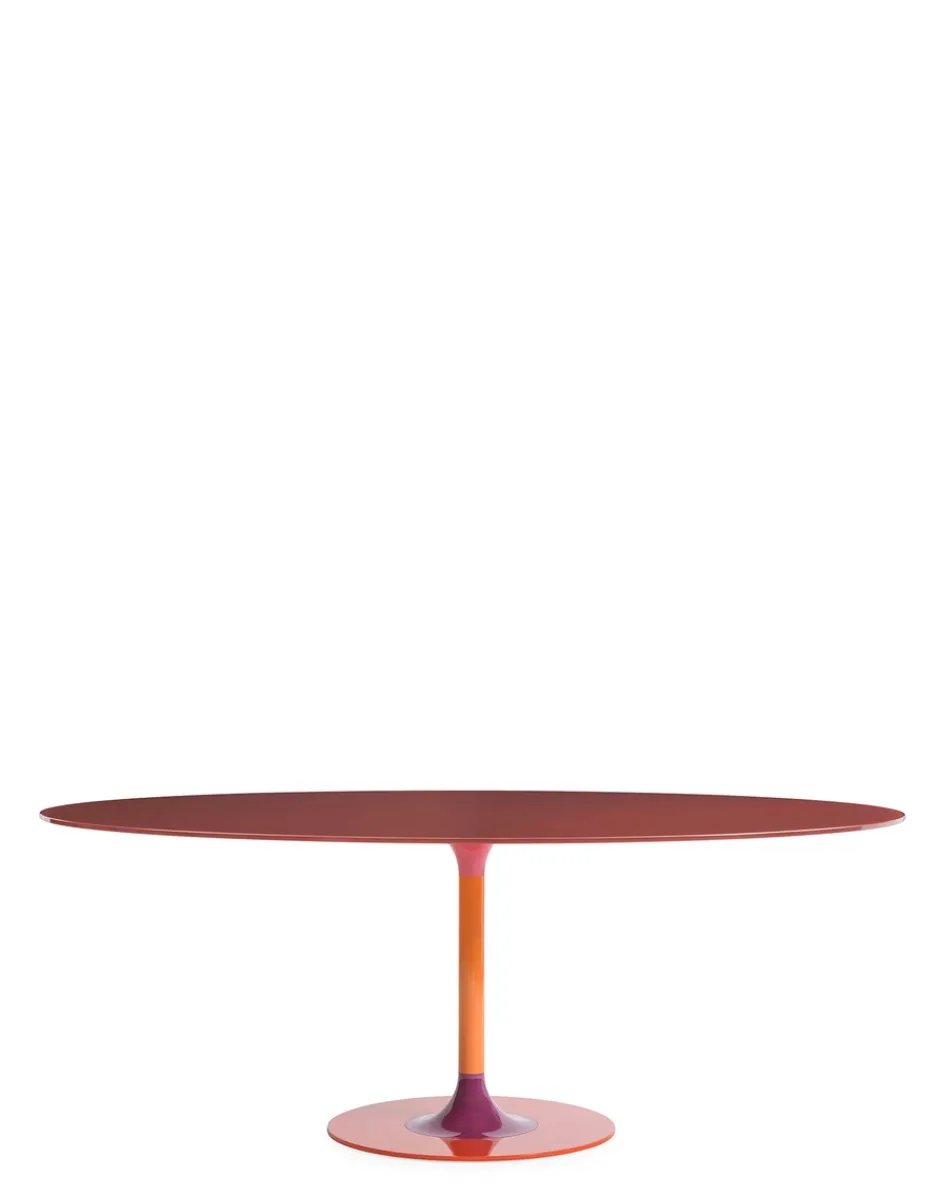 La famiglia dei tavoli “gioello” si amplia con THIERRY XXL pensati per il dining nelle versioni ovale e tonda, andando a completare la serie. Il mood elegante e allo stesso tempo accogliente della collezione gioca su una vivace gamma di colori, tra cui le varianti grigio, bordeaux e bianco. Una soluzione d’arredo passe-partout per più occasioni d’uso, caratterizzata da gambe in metallo e piani in vetro dalle cromie vibranti come gemme preziose.