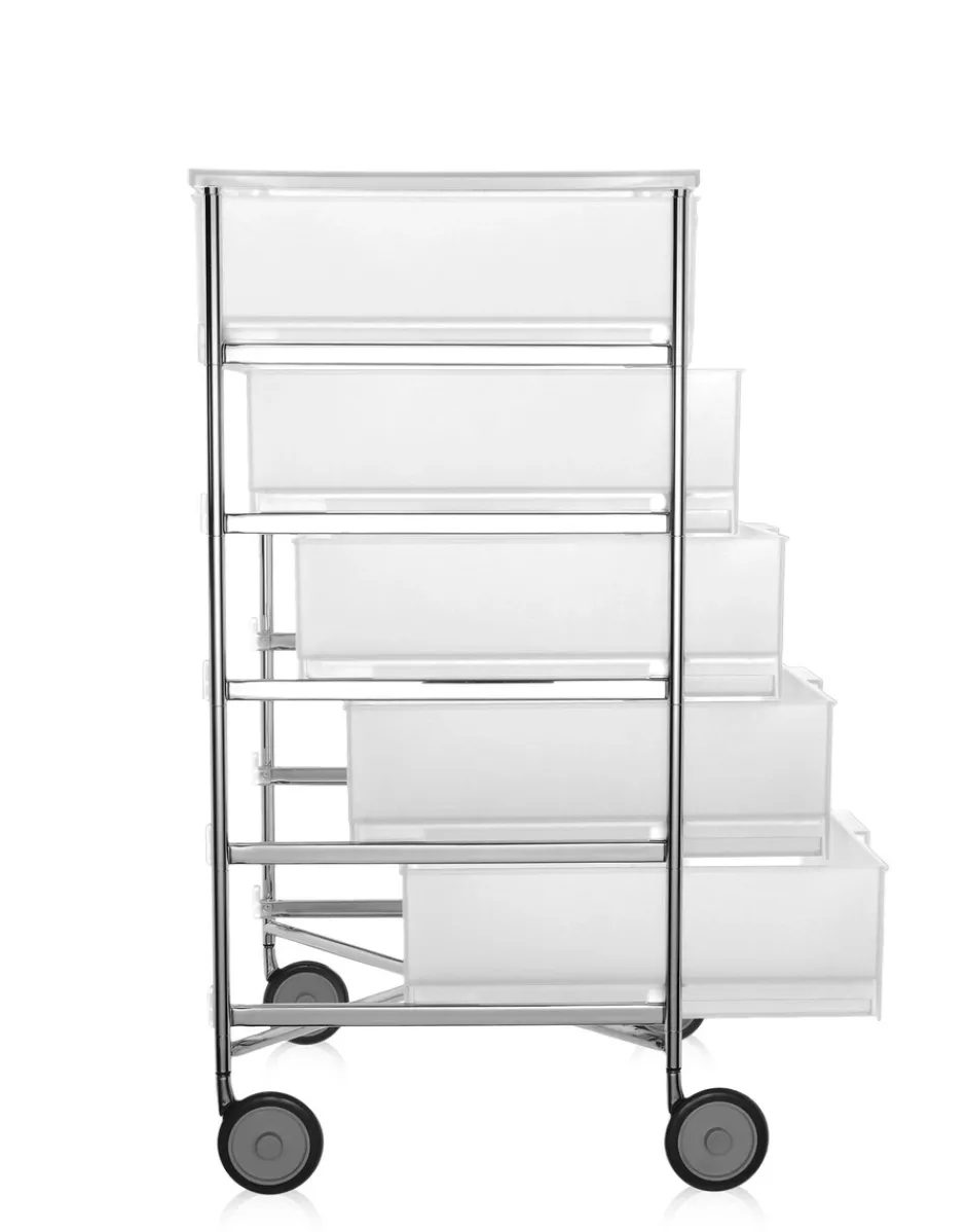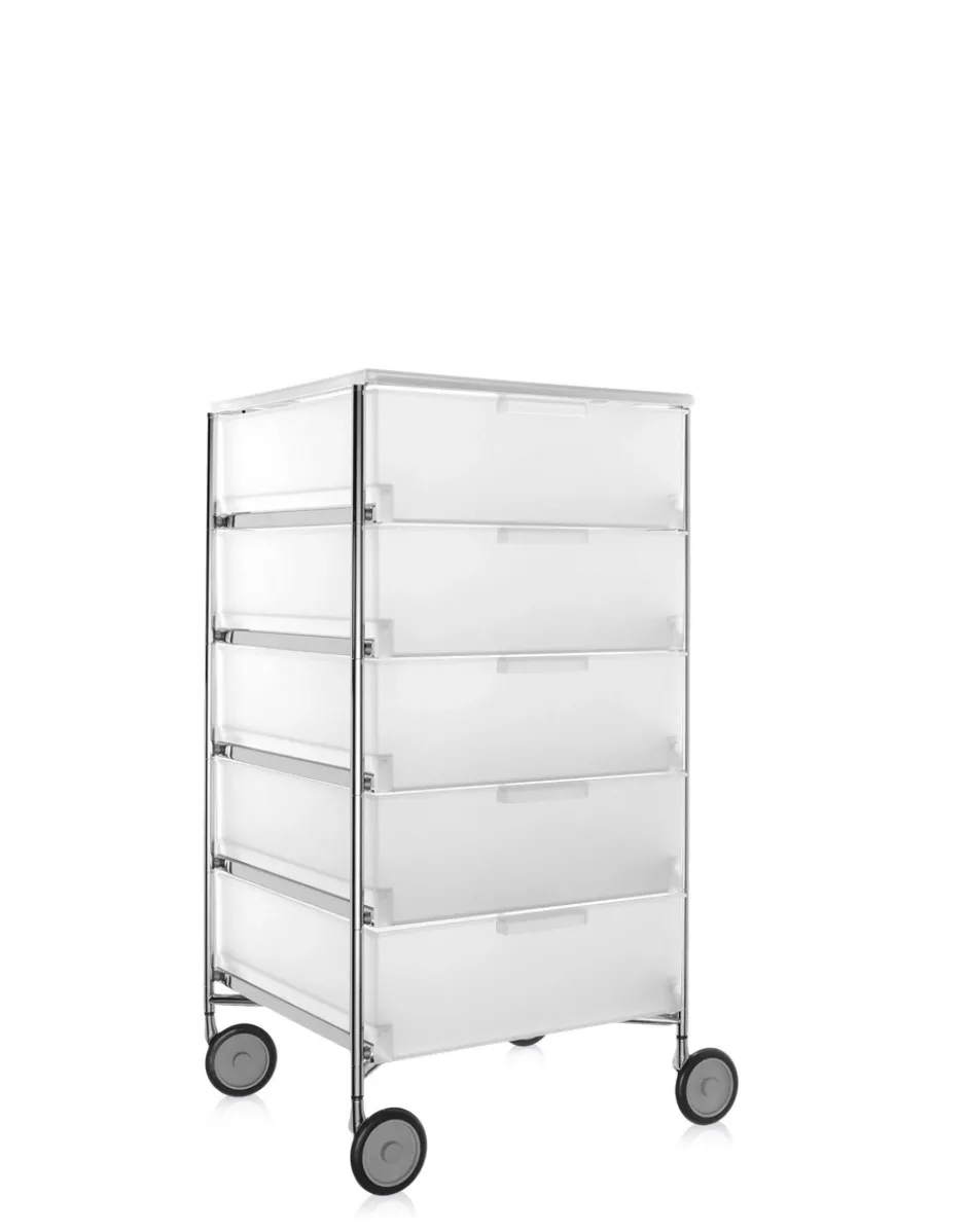 Mobil è un sistema di contenitori che si prestano ad essere inseriti in tutti gli ambienti della casa e dell’ufficio, rispondendo a diverse funzioni d’uso. Il cassetto, alternato ai piani e ai top superiori, è l’elemento base del sistema. Mobil può essere semplice cassettiera da 2 a 6 cassetti e avere comode maniglie. Le possibili configurazioni possono poggiare su ruote o su piedini fissi, suggerendo l’uso di Mobil in diversi contesti: dalla camera da letto al soggiorno al bagno, allo studio o l’ufficio come cassettiera da scrivania per riporre cancelleria e documenti.
