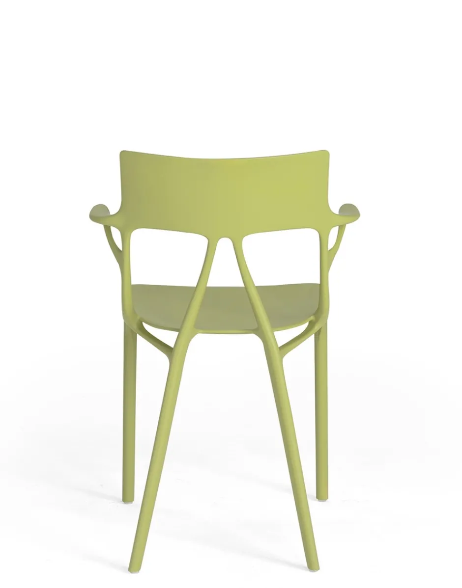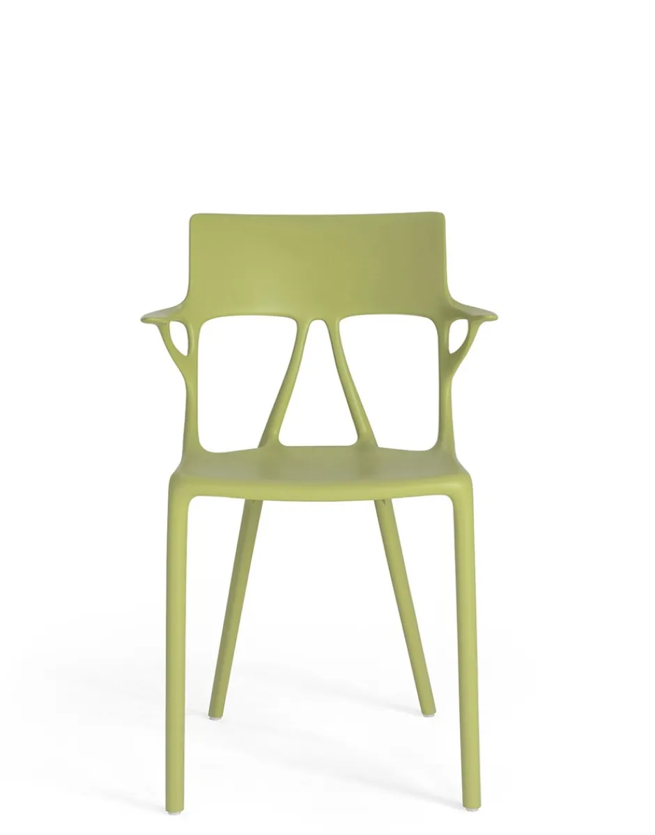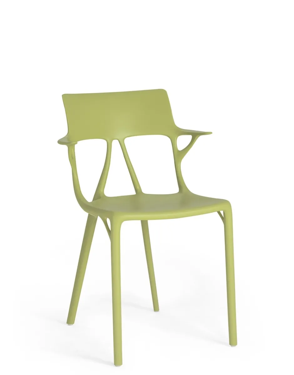 Kartell continua nel suo continuo impegno alla sostenibilità con prodotti eco-friendly che si inseriscono nell’ampio progetto espresso dal manifesto industriale Kartell loves the planet. A.I. è la sedia realizzata utilizzando per la prima volta materiale riciclato in cui qualità estetica e requisiti strutturali restano immutati e si coniugano al design generativo.Il valore aggiunto di A.I. consiste nell’essere la prima famiglia di prodotti concepita dall’Intelligenza Artificiale che ha risposto agli input ricevuti dal designer (Philippe Starck) e al know-how dall’azienda (Kartell). Nello specifico, pensiero creativo, know-how aziendale e intelligenza artificiale si sono fuse per concepire un modello di sedia totalmente elaborato da un algoritmo che rispetta le richieste originali del designer e dell’azienda ovvero essere un prodotto, confortevole, che abbia i requisiti strutturali di resistenza e solidità richiesti, mantenendo anche uno dei valori principali di Kartell: essere un prodotto industriale stampato ad iniezione di grande qualità estetica.